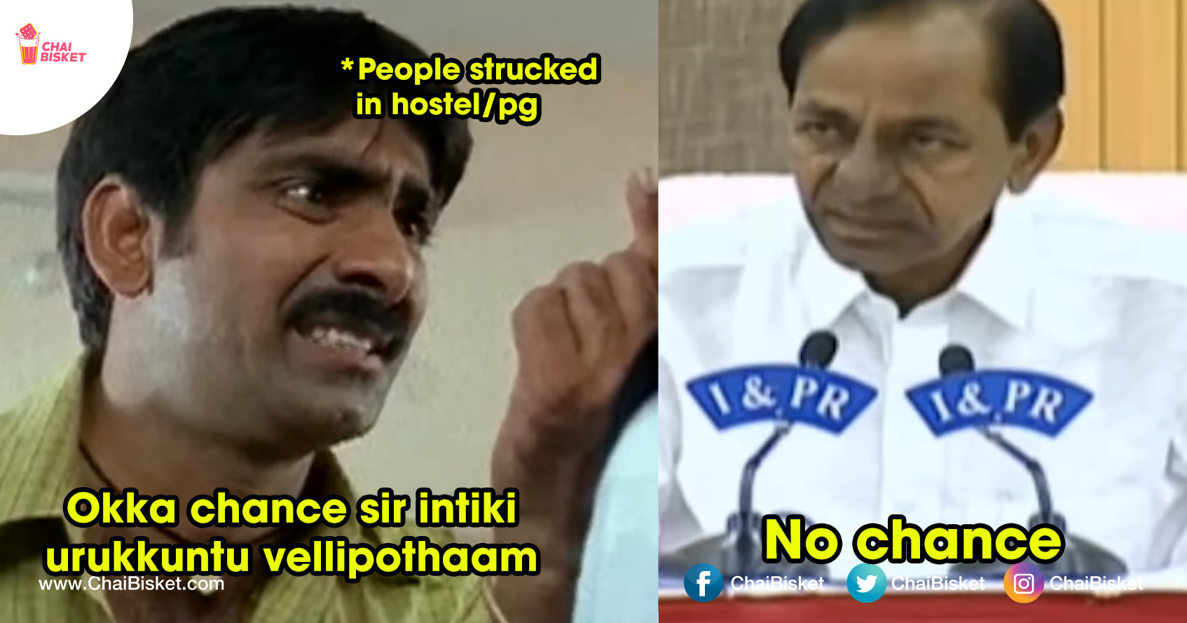 1. Hostelers.. Intikellipotham mamaaaa Okka chance ivvandi saar, intiki vellipotham.. appudu inka enni days ayina lock down extend cheyandi, nenu ikkada... maa vallu akkada.. etu kakunda pothunnam, more over ee hostel samber tho maa valla avatle andi..