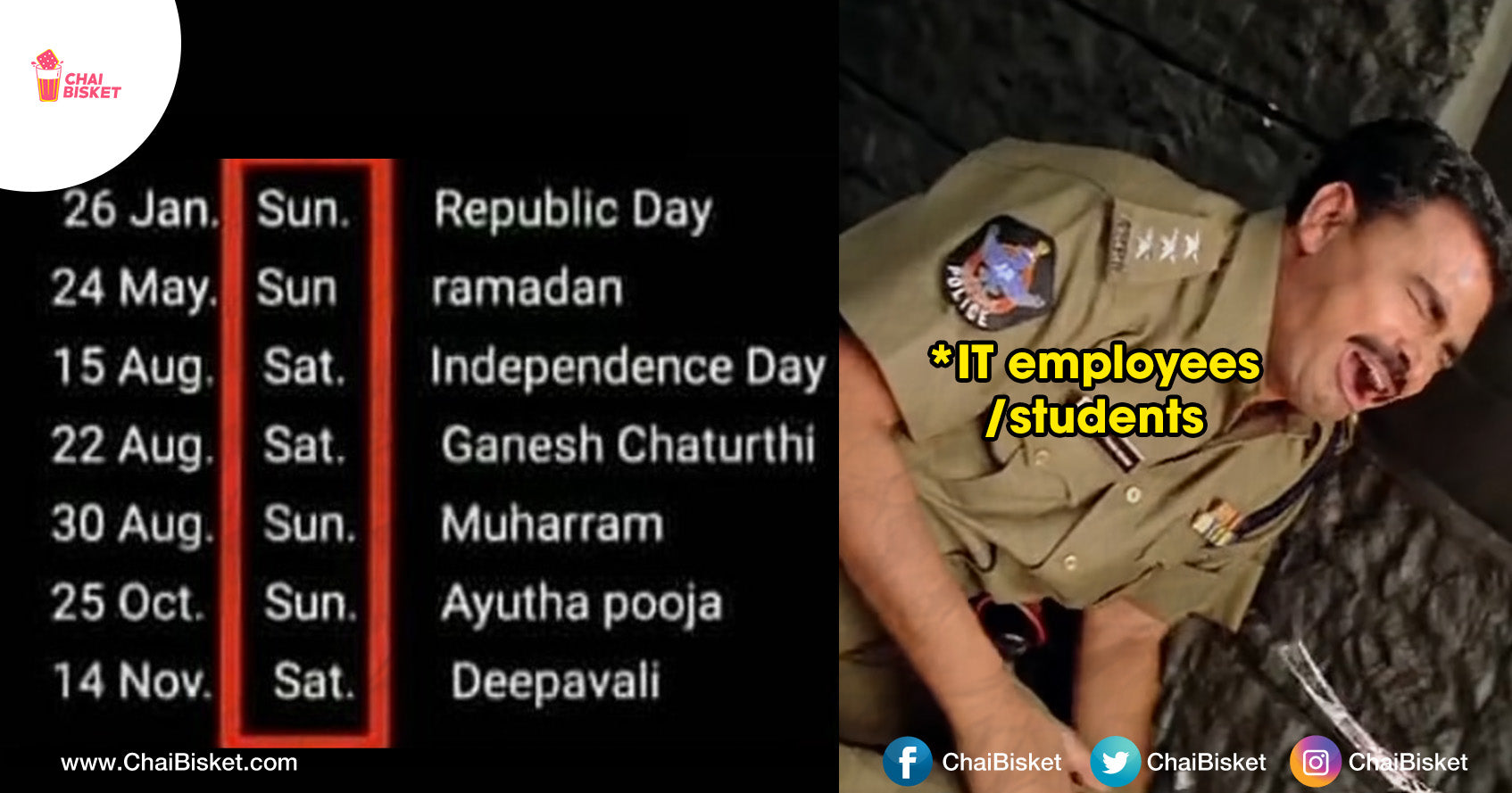 Enti ra machaa.. esari Government holidays anni weekends lo unnai.