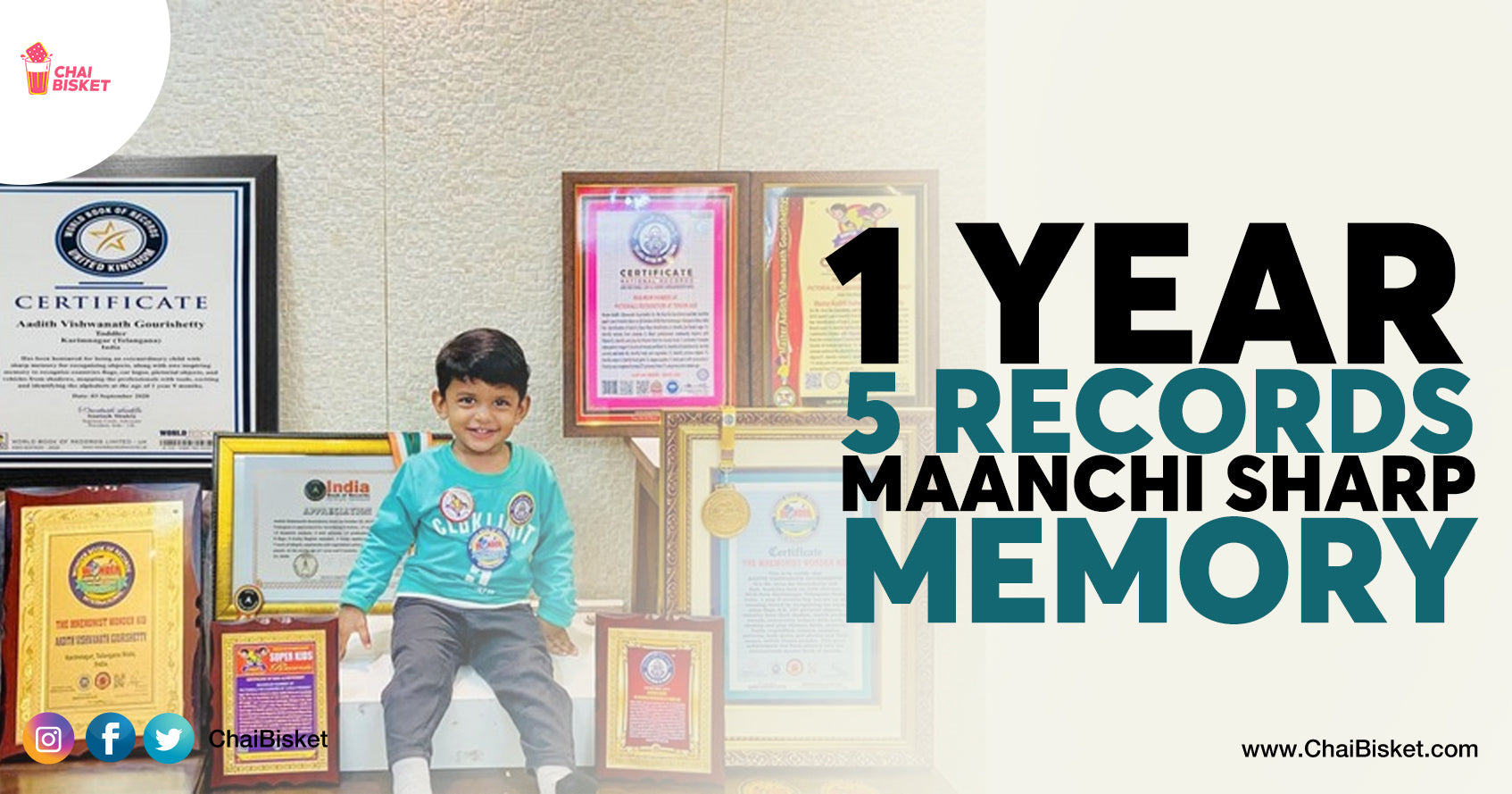 Aadith Vishwanath Gourishetty from Hyderabad is a 1 year, 9 month old baby who holds 5 unique records for having a sharp memory.