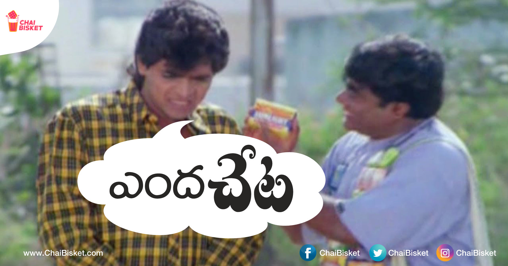 Galla chokkotho variety ga vunnadu kadha, bakara nu chesi ammedham.. anukunnadu sabbulodu. Kani scene reverse ayyindhi. Athanu em antunna manodu okate antunnadu "endha cheta" ani. Vedentra manishi variety anukuntey maata kuda variety ga vundhe, ani anukunna sabbulodu cheta kadhu sabbu. Edhi vadithe gajji, thamara, chundru, vanti nopulu, panti noppu pothai ani cheppadu . Appudu chetagadu...