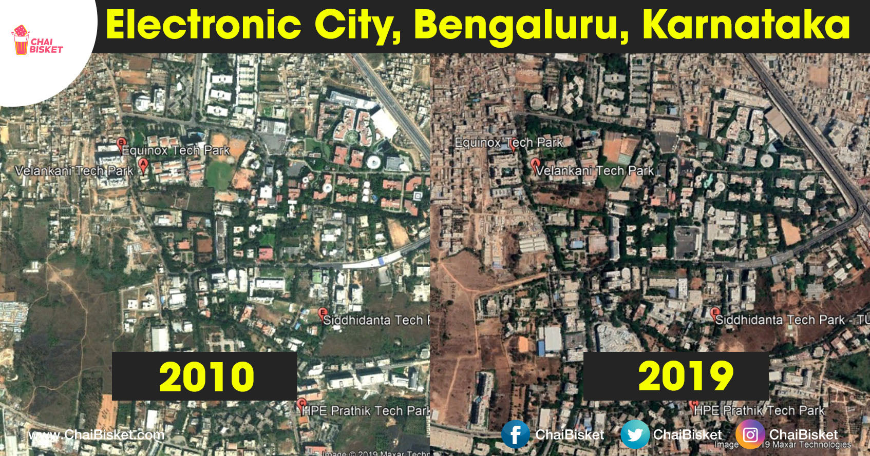 Google Earth, Google vaalla software. Ee software lo geographical changes ni Aa year lo google capture chesina images dwaara manam easy ga chudachu. Ala capture cheskunna images ni base cheskuni inthakumundu two articles raasanu. Beginning Of The Decade vs End Of The Decade ft. Andhra Pradesh & Telangana Cities Beginning Of The Decade vs End Of The Decade ft. Hyderabad Areas Globe lo ey place satellite view aina ee software dwara meeru chudachu. Ee software ni use chesi diifferent cities explore chesthunna naaku, "Em change ayyindi raa!" ani shock chesina cities lo namma Bengaluru okati. Mana telugu states taruvatha, Telugu vaallu vipareetanga kanipinche chotu, vinipinche chotu bengaluru "Ee sala cup namde" ani aa bengaluru team ni own cheskunnam manam. Software pakshulaku kalpavruksham laanti Bengaluru lo unna konni famous Tech parks 2004 lo ela undevi, 2010 ela maarayi, 2019 lo ela unnayi.. oka look eddam randi..