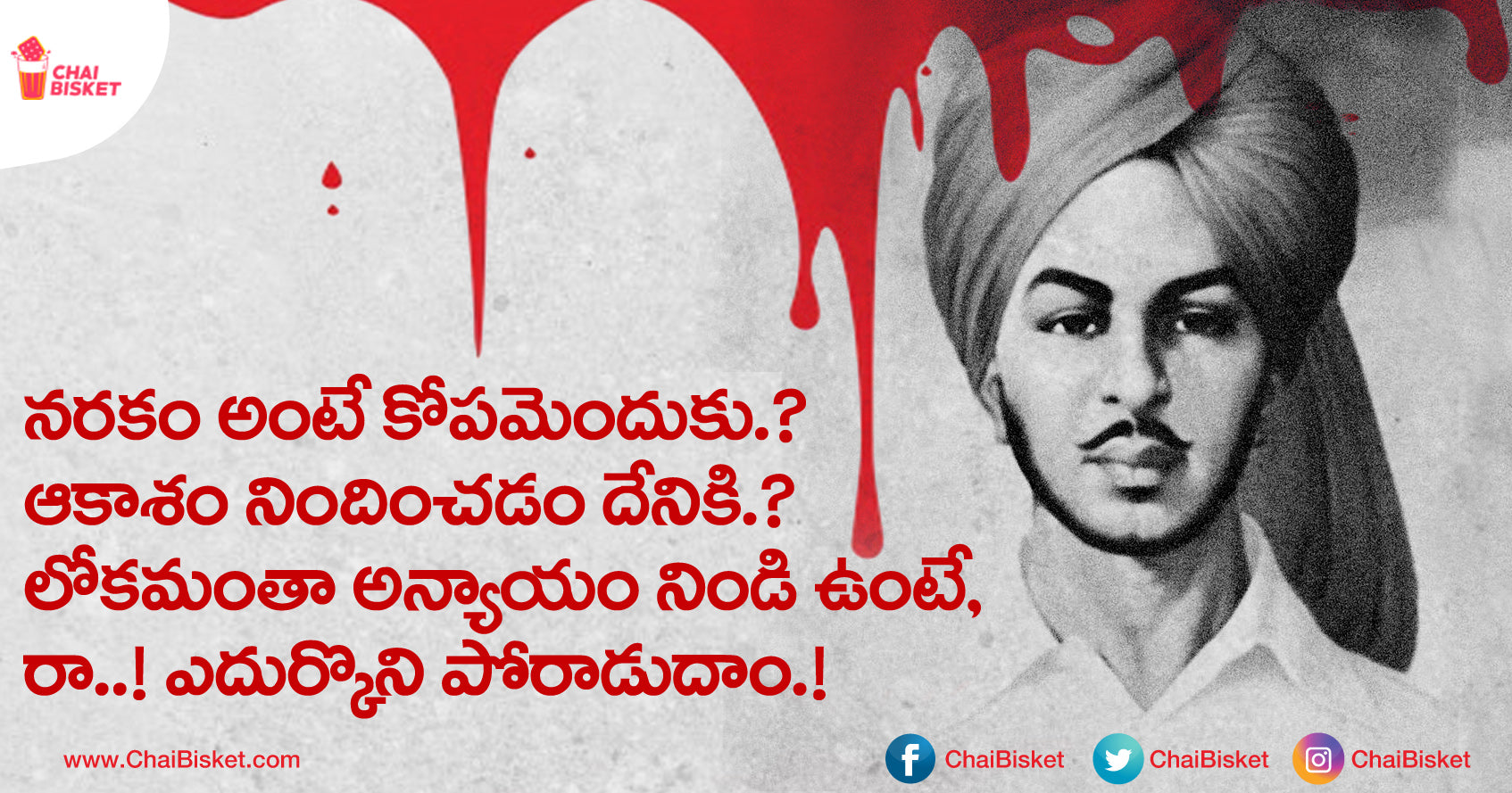 2. భగత్ సింగ్ కు కోర్టు ఉరిశిక్ష విధించింది.. ముల్తాన్ అనే జైలులో ఖైదీగా ఉన్న తన సహచరుడు బాటుకేశ్వర్ దత్ కు ఉద్విగ్నంగా భగత్ రాసిన లేఖ. ప్రియ భాయ్.. నాకు ఉరిశిక్ష పడింది. ఈ సెల్స్ లో నేను గాకుండా ఉరితీత అమలుకోసం ఎదురుచూసే అపరాదులెందరో ఉన్నారు. ఈ ఉరిశిక్ష తప్పిపోవాలి భగవంతుడా అని వాళ్ళు ప్రార్ధిస్తున్నారు.. వాళ్ళందర్లోకీ తప్ప పుట్టినవాణ్ణి నేనొక్కణ్ణేమో.. నా ఆశయాల కోసం ఉరికొయ్యకు వెళ్ళాడే అదృష్టం ఎప్పుడు కలుగుతుందా? అని ఆరోజు కోసం ఆత్రంగా ఎదురుచూస్తున్న వాణ్ని. నేను సంతోషంగా ఉరికొయ్య మీదకి ఎక్కి, విప్లవకారుడు తన ఆశయాల కోసం వీరునిలా ఎంతటి ఆత్మత్యాగం చెయ్యగలడో ప్రపంచానికి ఎలుగెత్తి చాటుతాను. నాకు ఉరిశిక్ష పడితే నీకు యావజ్జీవ కారాగార శిక్ష పడింది. నువ్వు జీవిస్తావు.. జీవిస్తూనే లోకానికి చూపించాలి. విప్లవకారుడు తన ఆదర్శాల కోసం కేవలం మృత్యువును వరించడమే కాదు; జీవిస్తూనే ప్రతిక్షణం ఎదుర్కొనగలడు కూడా - అని లోకానికి చూపించాలి. మృత్యువు కుటుంబ కష్టాల నుండి విముక్తి పొందే సాధనం కారాదు. విప్లవకారుడు పొరబాటున ఉరిశిక్ష అమలునించి తప్పిపోవడం తటస్థిస్తే - తను తన ఆశయాల కోసం ఉరికంబం ఎక్కడమే కాదు, జైలు చీకటి కొట్టులో సైతం నికృష్టమైన తరగతికి చెందిన అత్యాచారాలను సైతం భరించగలడని లోకానికి నిరూపించాలి. -మీ భగత్ సింగ్.