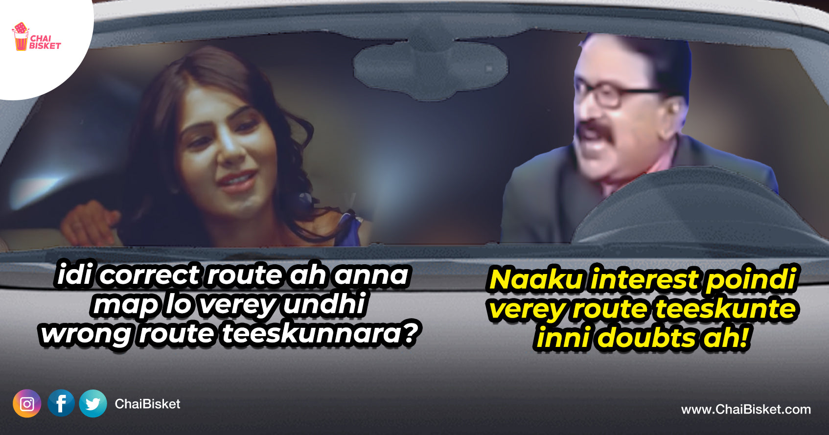 ‘Ammo ipudu nannu teskelli ammestada, janaalu unnara, endhuku itu side teskosthunadu, appatiki annaya drop chestadu annadu maname kathal paddam’ lanti dialogues eseskuntam mind lo. Ila panic avodhu ani chepthuna kaani ah situation unte nijamgane panic avutham. Kaani avakunda untene better. Endhukante genuinely ah driver traffic vallo, short cut vallo meku teliyani route lo teskellachu. Poni nijamgane teda kottina panic avadam valla oka use kuda undadhu.