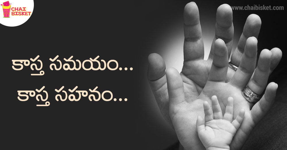 Correcte..peddha vayasu ayyaka chaadastham osthadi…kaadanatalledu…kaani..nuvvu mee amma pothillo unnappudu tholi rojullo physical ga..chaala ne kashtaalu padi untadhi… ala ani ninnu kanakunda undunte? Lekapothe..baboi..na valla kadu..addhe ki garbham dorikidda ani alochinchinda? Nuvvu puttina tarvatha..nee sleep timings ki elaago amma adjust ayyedi…paapam thellavaaru intlo panultho netho aame ki time telisedi kadu… kaani rojantha pani chesi alasi solasi poina mee nanna kaasepu kunuku teeddam ani ala vaalipoina maru kshaname nuvvu nee raagam etthe vaadivi kada? Ayina “naa bujji kanna enduke” ani aadinche aa thandri ni..meerippudu ade work nunchi vachaka oka maata matladithe visukkuntaare?