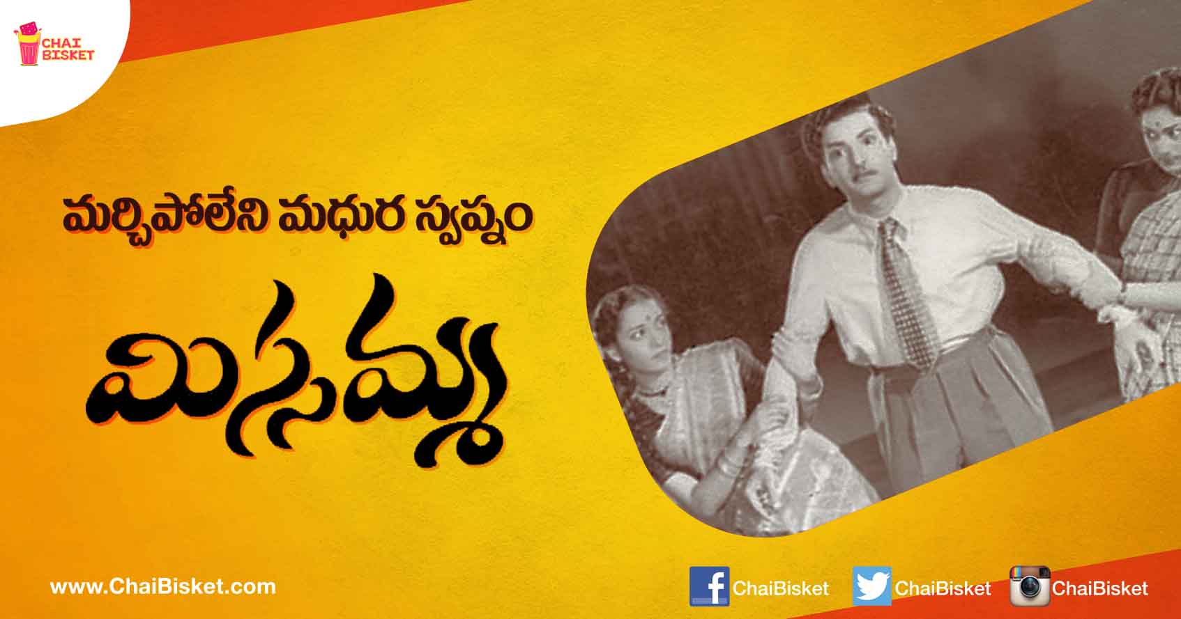 1955 లో అంతర్ కులలా మధ్య పెళ్లి జరగటమే కల, అలాంటిది అంతర్ మతాల మధ్య ఓ ప్రేమ కథని నడిపించిన తీరుకి, ఆధునిక యువతి, యువకుల భావాలను ఆవిష్కరించిన తెలివికి, దానిని ప్రేక్షకులు మెచ్చుకునేలా చేసిన నేర్పుకి ఇప్పటి తరం కూడా ఆశ్చర్యపోయేలా చేసిన సినిమా మిస్సమ్మ. అప్పట్లో చక్రపాణి, నాగిరెడ్డి గారి విజయ వాహిని స్టూడియోస్ నుండి వస్తున్న సినిమా అంటే...ఇప్పుడు రాజమౌళిగారి సినిమా ఎలానో, అప్పుడు విజయ వాహిని సినిమా అలా అన్నమాట. కాదు కాదు, అంతకుమించే. విజయ వాహిని స్టూడియోస్ ఎన్నో అద్భుతమైన చిత్రాలు నిర్మించారు, అందులో ముఖ్యంగా చెప్పుకోవలసిన చిత్రాల వరసలో ముందు ఉండేది "మిస్సమ్మ".