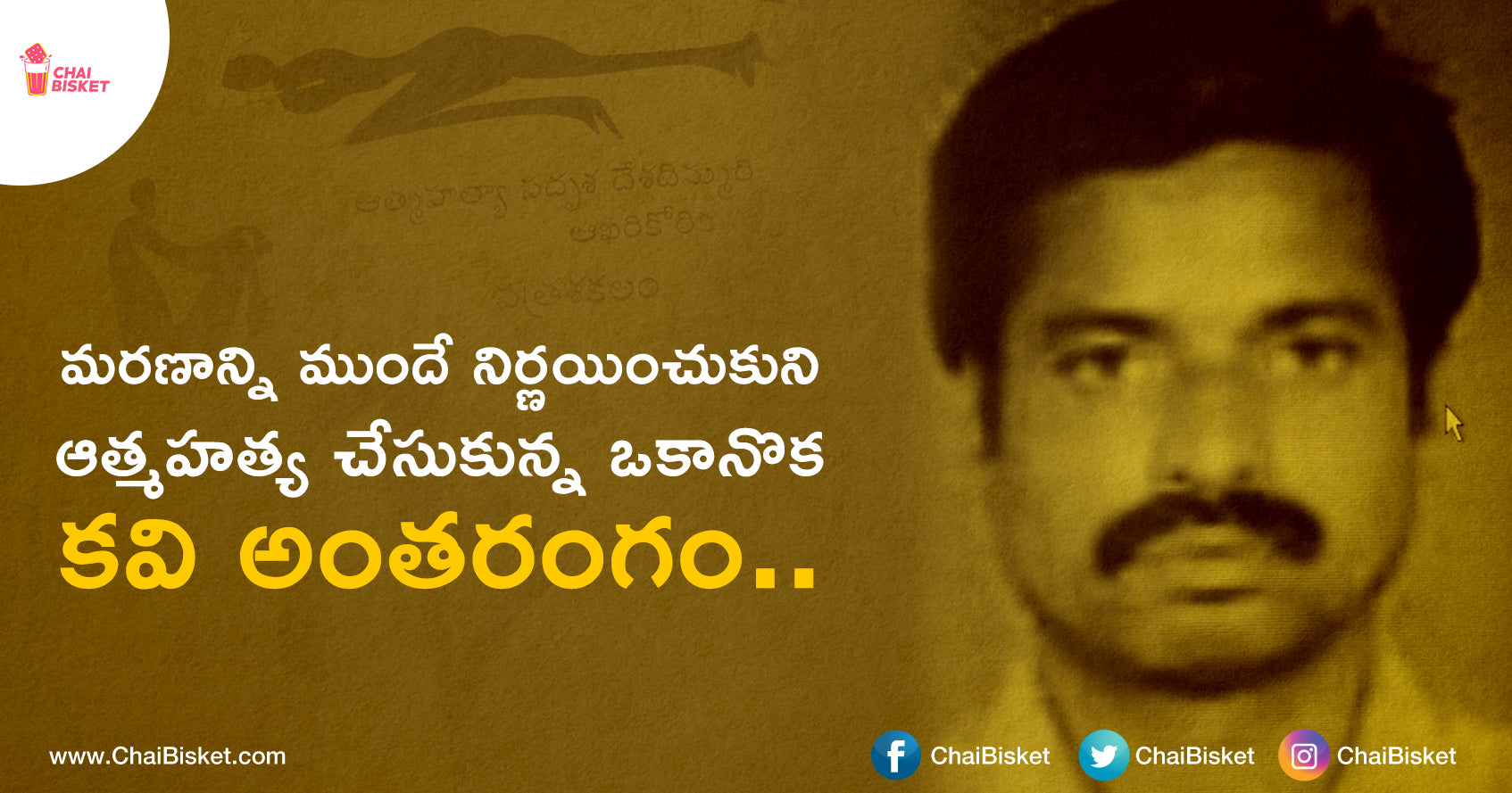 నిజానికి ఆయన చావు నెమ్మదిగా ప్రారంభమయ్యింది. ముఖ్యమైన కారణం ఇక్కడ అప్రస్తుతం. యువకుడిగా బలంగా ఉండాల్సిన వయసులోనే రోజుల తరబడి ఏమి తినక మానసికంగా శారీరకంగా కృంగి పోయారు.. మనుషులున్నా, స్నేహితులన్నా ప్రాణమిచ్చే తను చివరికి వారెవ్వరికీ ఒక్క మాట కూడా చెప్పకుండా వెళ్లిపోయారు..