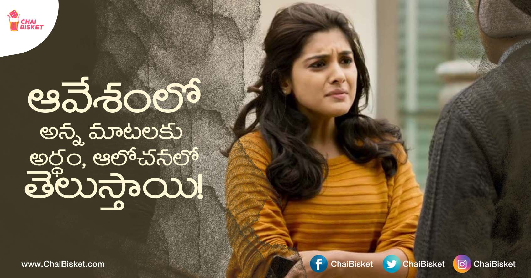 "ఆవేశంలో అన్న మాటలు, ఆలోచించి చూడు చాలు. సమాధానాలు దొరుకుతాయి కాబోలు!"
