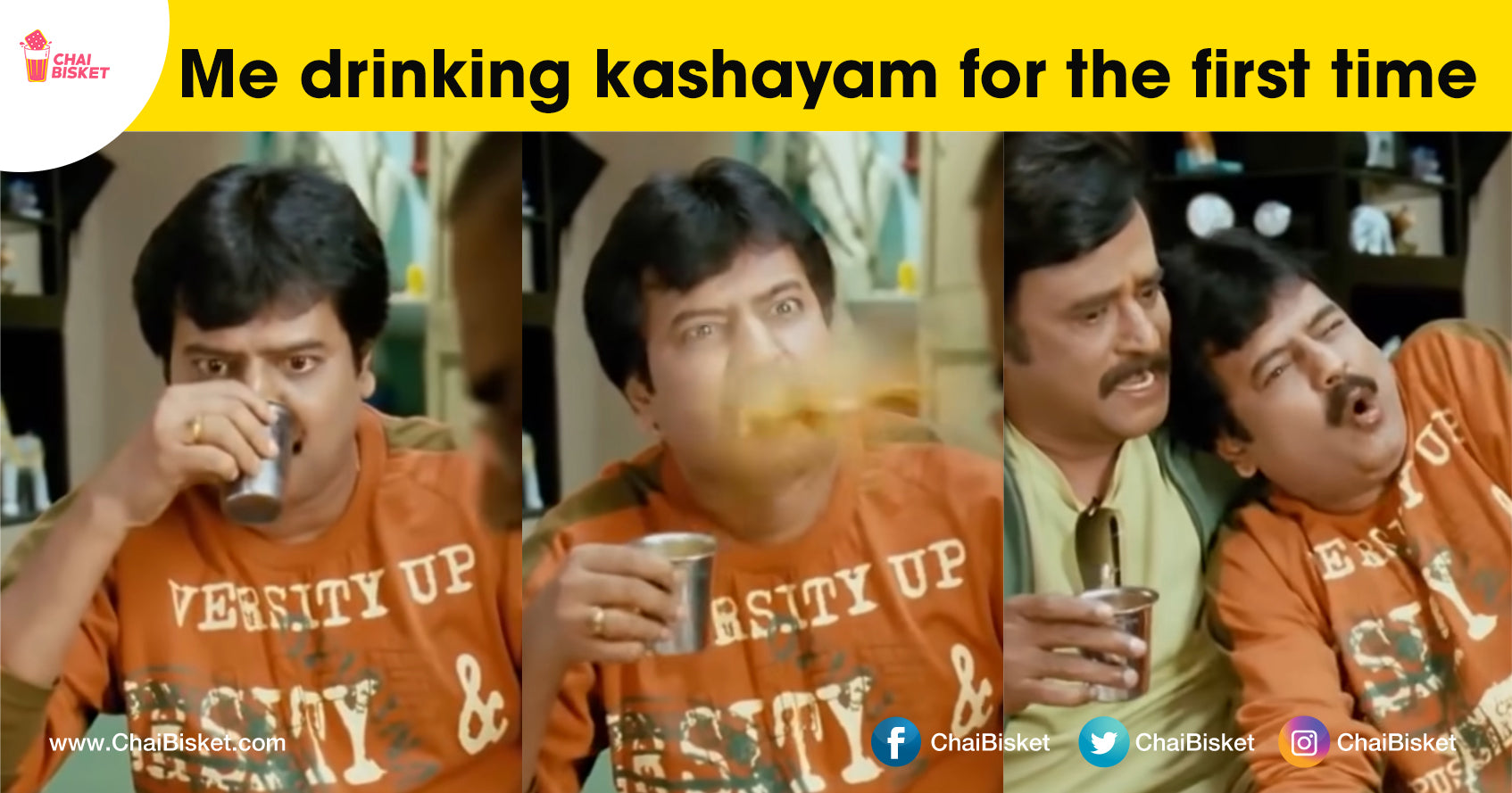 Me getting frustration and motivation and takkuna drinking kashayam...