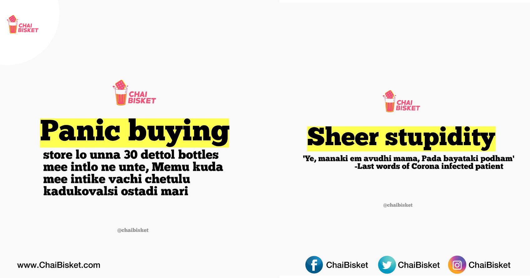 'Ye manaki em avudhi mama, Padha bayataki poyi oka ride esi odham'. - Last words of Corona infected patients.