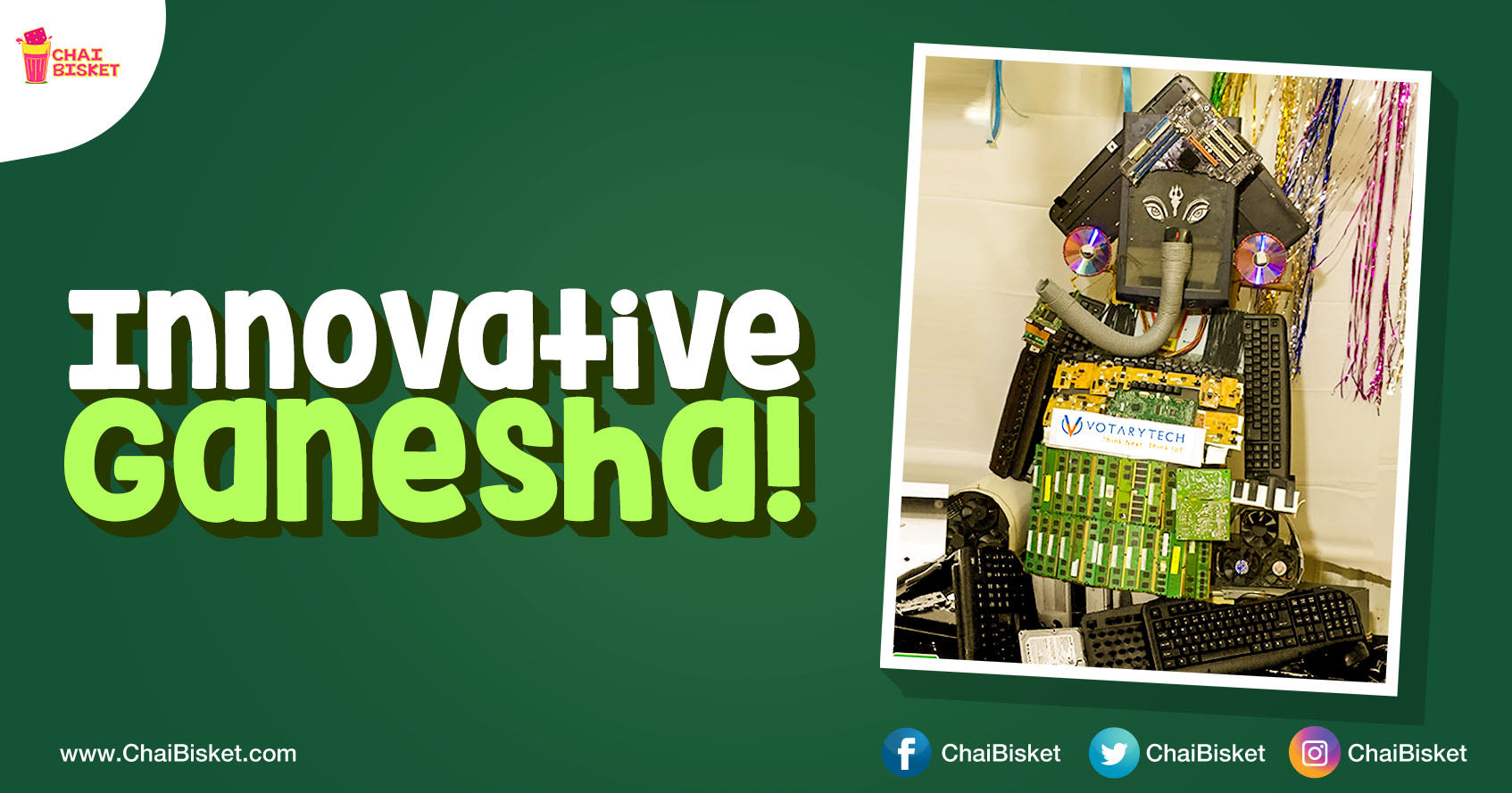 Votary Tech, a growing IT company from Hyderabad, stood apart in promoting the Eco friendly Ganesh idols movement. This Ganesh Chathurthi, they made a Ganesh idol using all the non-usable parts of a computer. By doing so, they promote Eco Friendly idols and also share a very important message too.