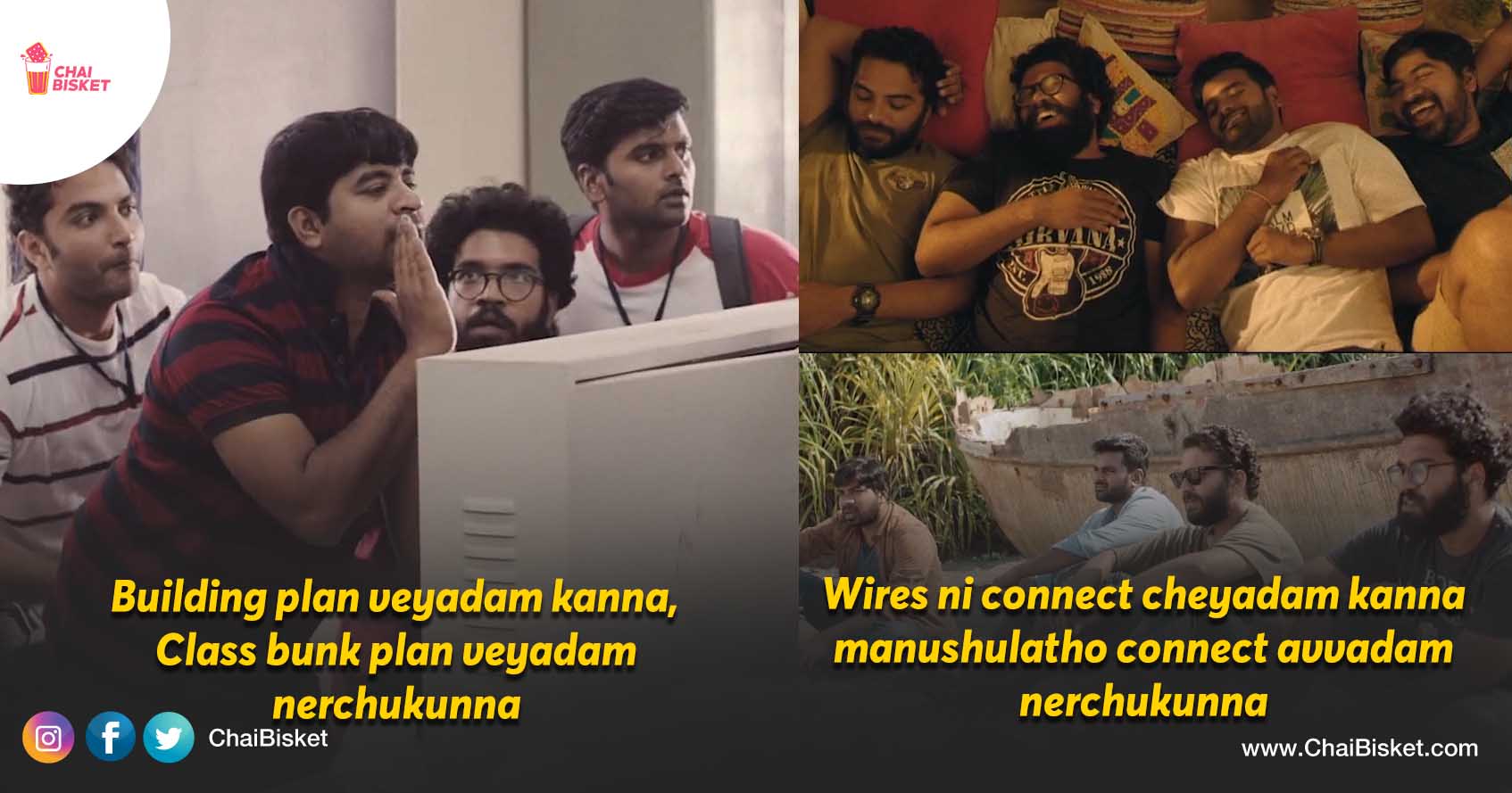 "Engineering lo em nerchukunnavu" ani adigithe, "Adhi tappa anni nerchukunna" ani athanu chepthe, joke anukuni navveyakani.. Chaala serious ga entho emotional ga cheppuntaadu athanu aa maata. Engineering ante 4 botlu, 4 codes, 4 wires, 4 signs, 4 signals, 4 machinelu kaadhu. Anthaku minchina experience.. Aa taruvatha enno yellu face cheyalsoche manushulaki, life ki 4 years training sesssion laantidi engineering. 10th varaku school age lo aatalatho gadichipothundi.. Em jarugutundho telise lope inter aypothundi. Engineering lone oka clarity manushullo unde chaala rakaalu telusthaaru. Pains, Heart breaks, realization, revolution ilaa enno nerpisthundi Engineering.