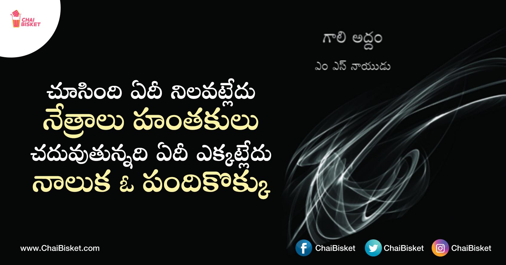 గాలి అద్దం ఎవరికిపడితే వారికి అందదు, మనం కాస్త ఎత్తులో ఉండాలి, ఎవరినిపడితే వారిలోకి సులభంగా ప్రవేశించదు, ఆహ్వానించే శక్తి ఉండాలి. గాలి అద్దం తన పాఠకులను తానే ఎన్నుకుంటుంది. వారికి ఎలాంటి అర్హతలు ఉండాలంటే.. ఓపెన్ మైండ్ తో ఆలోచించగలగాలి, కాస్త జీవితాన్ని చూసి ఉండాలి, బాధను దుఃఖాన్ని అనుభవించి ఉండాలి, రోజులో కాస్త ఒంటరిగా గడుపుతూ ఏవో ఆలోచిస్తూ ఉండగలగాలి, ఓపిక కూడా ఉండాలి. ఎంఎస్ నాయుడు గారు రాసిన ఈ గాలి అద్దం పుస్తకము మనసుని ఒకేసారి నిశ్శబ్దం చేసి కొత్త ఆలోచనలను పుట్టించగలదు.