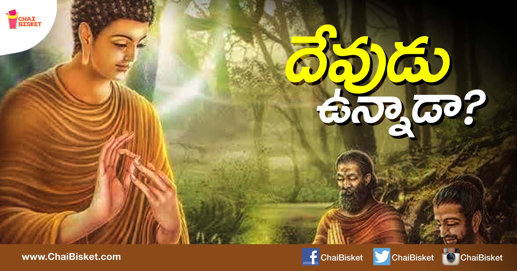 ఒకరోజు గౌతమ బుద్ధుడు తన సేవకులతో కలసి ఒక గ్రామాన్ని సందర్శించారు. బుద్ధుడి పై ఉన్న గౌరవపూర్వకమైన నమ్మకంతో వారి ప్రశ్నలకు ఖచ్చితమైన సమాధానం దొరుకుతుందని ఆశిస్తూ ముగ్గురు వ్యక్తులు వేరు వేరు సంధర్భాలలో బుద్ధుడిని దర్శించి వారి అనుమానాన్ని నివృత్తి చేసుకోవాలనుకున్నారు. ఉదయం ఒక వ్యక్తి వచ్చాడు.. అసలు దేవుడు ఉన్నాడా..? బుద్ధుడు: లేడు.. అస్సలు లేడు.! మధ్యాహ్నం ఇంకో వ్యక్తి వచ్చాడు. స్వామి.. అసలు దేవుడు ఉన్నాడంటారా ? బుద్ధుడు: ఉన్నాడు.. ఖచ్చితంగా ఉన్నాడు. సాయంత్రం మరో వ్యక్తి వచ్చాడు గురువర్య అసలు భగవంతుడు ఉన్నాడా..? ఈసారి బుద్ధడు కాసేపు ఏమి మాట్లాడకుండా కళ్ళుమూసుకున్నాడు. బుద్ధుడు ఇలా చేయడాన్ని చూస్తున్న ఆ వ్యక్తి కూడా ఏమి మాట్లాడకుండా కళ్ళు మూసుకున్నాడు. "ఆ నిశ్శబ్ధంలో ఏదో తెలియని శక్తి అతని హృదయంలోకి ప్రసరించినట్టుగా జ్ఞానోదయ భావం పొంది కన్నీరులో వచ్చిన ఆనందానికి పరవశించిపోయాడు. నిజం అర్ధమైన ఆ వ్యక్తి బుద్ధుని పాదాలకు వినయంగా నమస్కరించి అక్కడి నుండి వెళ్ళిపోయాడు". "ఉదయం నుండి ఈ వేర్వేరు సమధానాలను చూసి శిష్యుడు 'ఆనందుడికి' ఏమి అర్ధం కావడం లేదు.. "సత్యమనేది ఎప్పటికి సత్యమే ఆ సత్యాన్ని వివరించకుండా ప్రతి ఒక్కరికి ఒక్కో విధంగా చెప్పడమేంటి ? అని ధీర్ఘంగా ఆలోచిస్తు సమాధానం కోసం ఆనందుడు బుద్ధుడిని ఆశ్రయించాడు".. దానికి బుద్ధుడు ఇలా చెప్పాడు.. బుద్ధుడు: "మొదట వచ్చిన వ్యక్తి ఆస్తికుడు(theist) అతనికి దేవుడు లేడు అని చెప్పాను". "రెండవ వ్యక్తి నాస్తికుడు(atheist) అతనికి దేవుడు ఉన్నాడు అని అన్నాను". "ఇక మూడవ వ్యక్తి దేవుడు గాని, ఇంద్రియాతీతమైన శక్తిగాని లేదని విశ్వసించే వ్యక్తి(Agnostic) అందుకే అతనికి ఏ సమాధానం ఇవ్వకుండా నిశ్శబ్ధంగా ఉండిపోయా".. 'ఎవడైతే దేవుడిని నమ్ముతున్నాడో(theist) అతనికి దేవుడు లేడు అని చెప్పాను'. అతను ఇంతవరకు దేవుడి ఉనికిని చూడలేదు.. చూస్తే నన్ను అలా అడిగేవాడే కాదు, ఎవరో చెప్పినదాన్ని నమ్ముతున్నాడు. ఎవరైతే దేవుని మీద అచంచలమైన విశ్వాసం ఉంటుందో అతనికి దేవుని ఉనికి మీద ఏ అనుమానం ఉండదు. అతనేమి ఇతరుల అభిప్రాయం కోసం ఎదురుచూడరు. ఒకవేల నిజమైన భక్తుడు దేవుడి ఉనికిని చూడకపోయినా కనీసం చూడటానికైనా ప్రయత్నిస్తాడు.. అనుమానంతో ఉన్నవారికే అలా చెప్పాను. ""ఎందుకంటే నమ్మకాలు అనేవి సత్యాన్ని తెలుసుకోవడానికి ఉన్న అడ్డుగోడలు"". ఎవడైతే దేవుడిని నమ్మడో(atheist) అతనికి "దేవుడు ఉన్నాడు" అని చెప్పాను, ఎందుకంటే అతని నమ్మకాల అడ్డుగోడలను కూల్చడానికి అలా చెప్పాను. లేకుంటే అతను నిజాన్ని ఎప్పుడు తెలుసుకోలేడు. నా సమాధానంతో ప్రశ్న అడిగినవారిలో ఒక ఆలోచన పుట్టాలి తద్వారా నిజమైన సత్యాన్ని వారంతట వారే తెలుసుకోవాలి. "నమ్మకాల అడ్డుగోడలను కూల్చాలనే వీరిద్దరికీ 