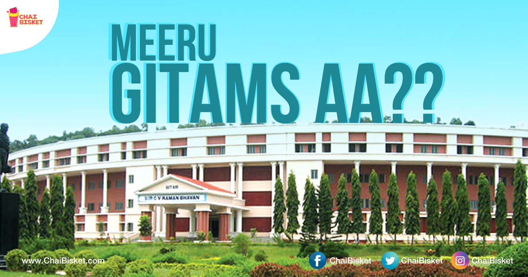 1. Meru entra babu Gitam Inka mana matter loki vasthe, ee college aina sare Ala vuntundi, ila vuntundi ani expectations vuntai. Ade GITAM aithe avi chala ekkuva vuntai. Mana pelli gurinchi mana parents kanna relatives ki ela aatrutha ekkuvo alane mana college gurinchi bhaiyata vallake expectations ekkuva , manam em chesina sare okkate dialogue vestaru, Meru entra babu Gitams , Adho brand ani.. First adi GITAMS kadhandi... 'GITAM'