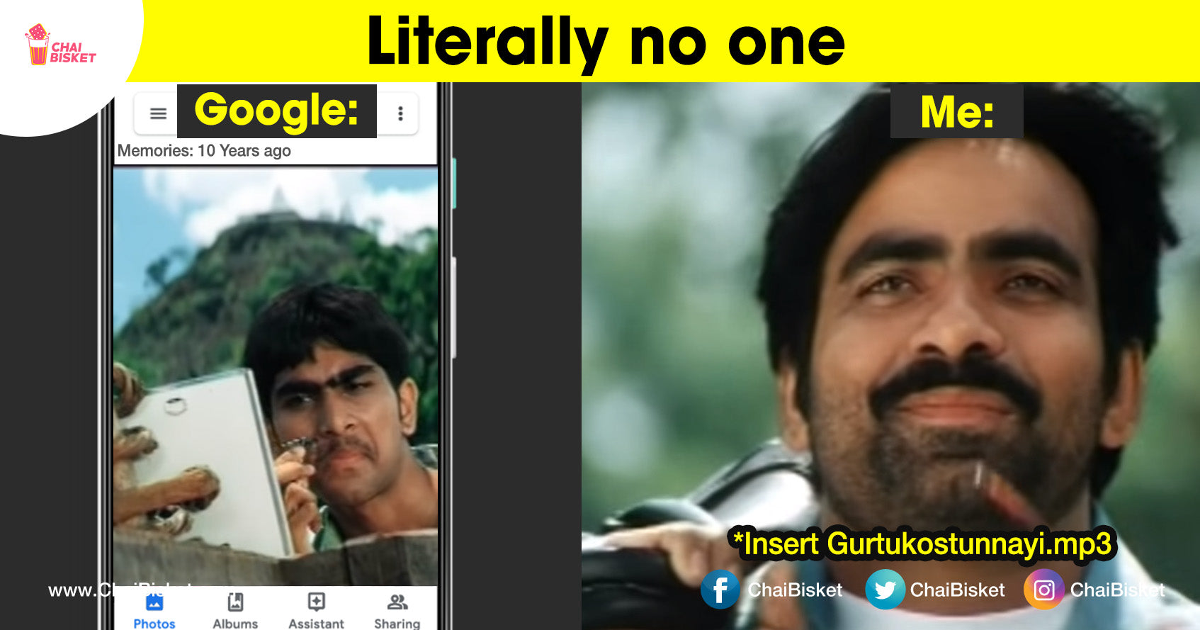 1. Gurthukosthunnai... 1year ago Google photos.. Commercial cinemalo edho character vachi mana flash back ni gurthu chesinatuu mana past ni photos tho gurthu chesthadi, Google photos notifications is just lub.