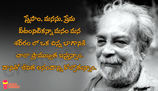 బంగినపల్లి మామిడి రుచిని ఎంత వర్ణించినా, దాన్ని కొరికి తిన్నప్పుడు కలిగే అనుభవం తీసుకురాలేం. అలానే ఆయన రచన శైలి గురించి ఎంత చెప్పినా, ఆయన రచనలు చదవిన తరువాత కలిగే అనుభూతిని అర్ధం అయ్యేలా చెప్పలేం. ఆయన రచనల్లోని మంచి లైన్స్ అందిస్తున్నాం, మీకు ఆసక్తి ఉంటె పూర్తి వివరాల కోసం గూగుల్ తల్లి ఉంది గా.