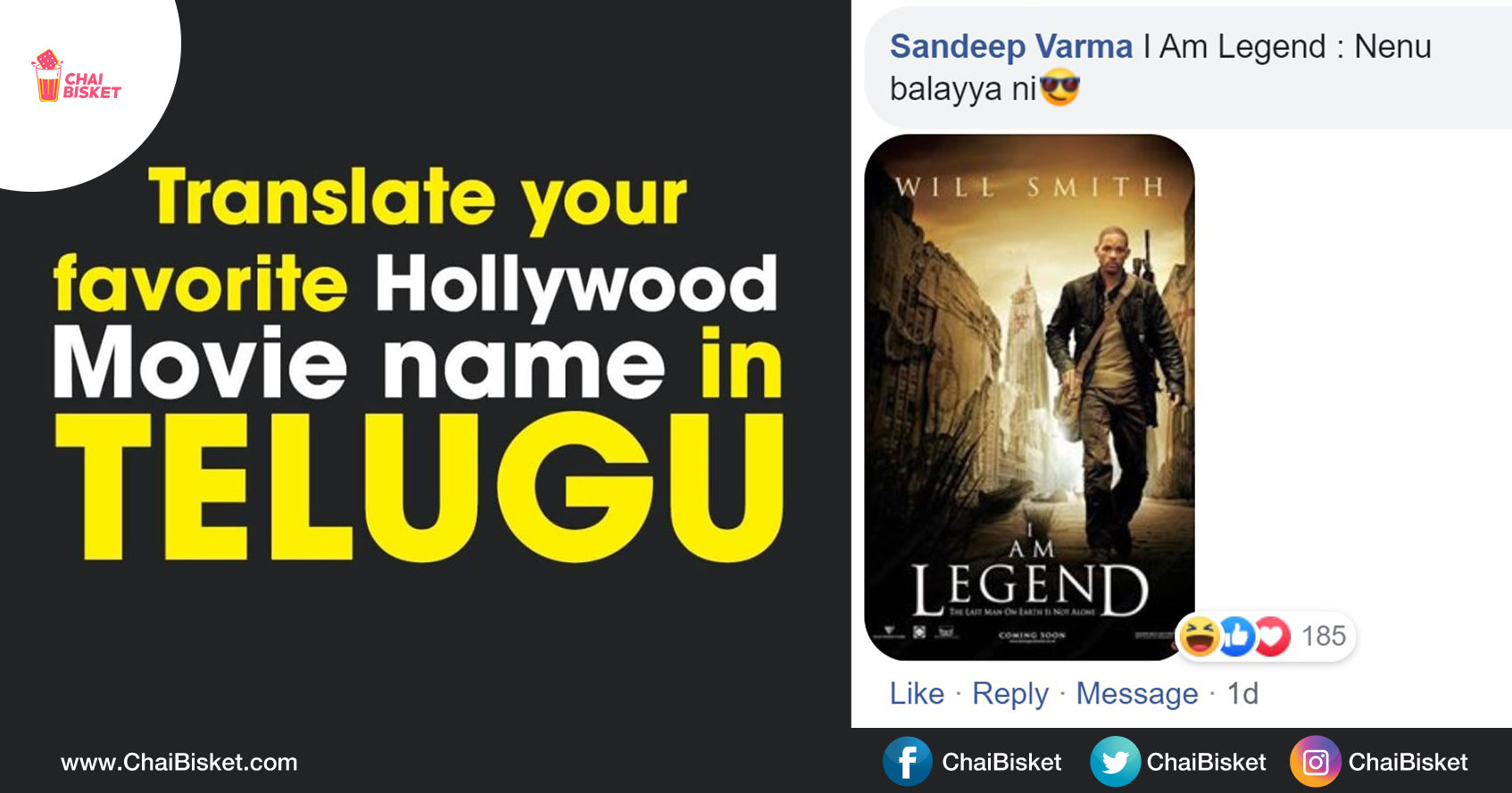Recent ga #CBMuchatlu ane hashtag tho Mana audience ni oka question adigaam. "Meeku ishtamaina hollywood cinema ni telugu lo translate cheyandi" ani.. And we got tremendous, funny, hilarious response. Okko commentu okko epiccu. Aa epic comments lo konni mutyaalani eri ikkada compile cheyadam jarigindi. Trust me ivi just sample maatrame. Main post ni chudandi you will have great fun..