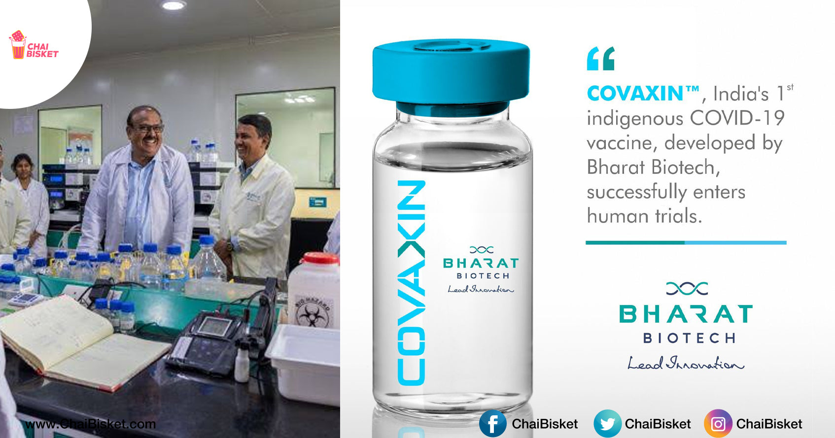 Mana Hyderabad based Bharat Biotech ane company Covid 19 ki vaccine ni produce chese process lo unnaru, Phase 1,2 clinical trials kosam Drug Controller General of India (DCGI) nunchi clearance kuda vachindi. It is the first Indian pharmaceutical company to launch human trails of their inactivated vaccine COVAXIN