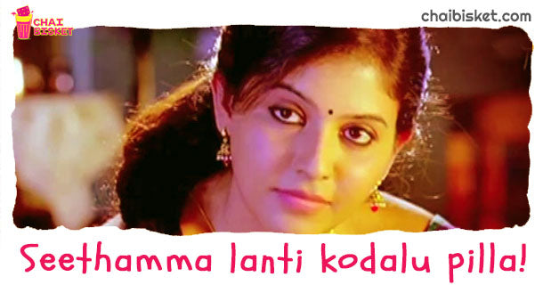 2. Aparichitudu should have nothing on her. She can be her lazy, ‘Ammma manchi neellu’ self when she is at her mother’s home but she will have to be the all-cheery, rainbow-farting ‘Sitamma Vakitlo’s Sita’ when she is at her in-laws.