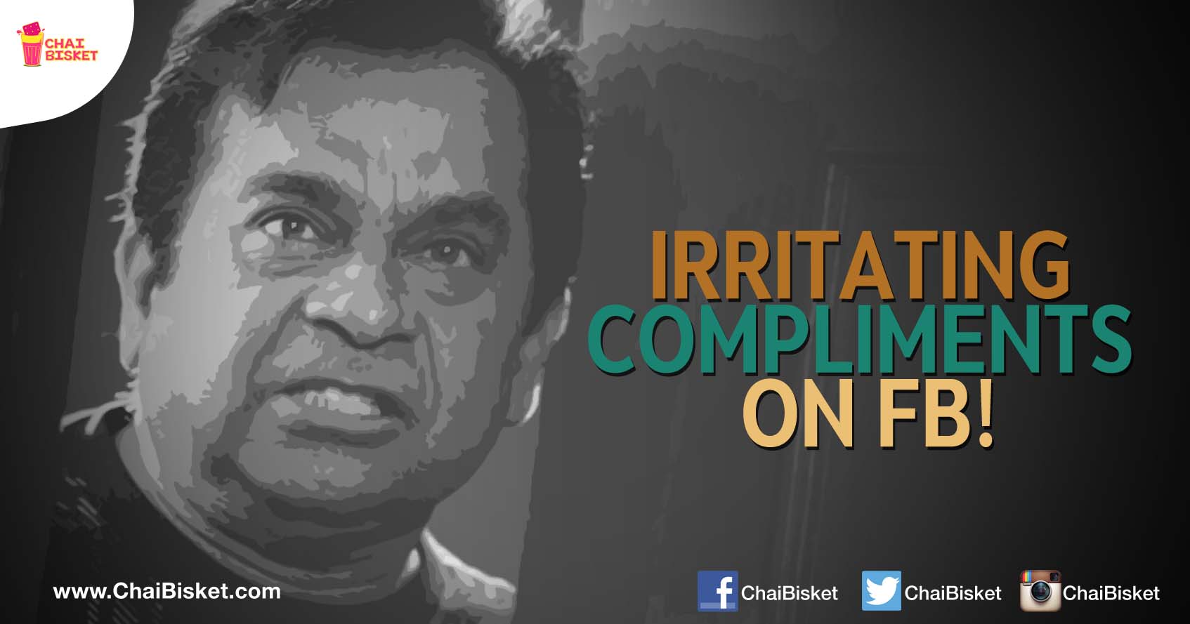 Facebook lo comments tho ne irritate chestharu anukunte thappe, compliments tho mana meeda manake asahyam puttinche mahanubhavulu unnaru. Veellaki asalu compliments ki comments ki theda teledu. Edo okka pic ki okasari funny ga undatam kosam or vetakaram ga memes pedithe comment box lo okay, kani kakruthi tho pade pade samayam sandarbham lekunda prathi daniki yedava compliments isthe yelaparam ochesthadi!