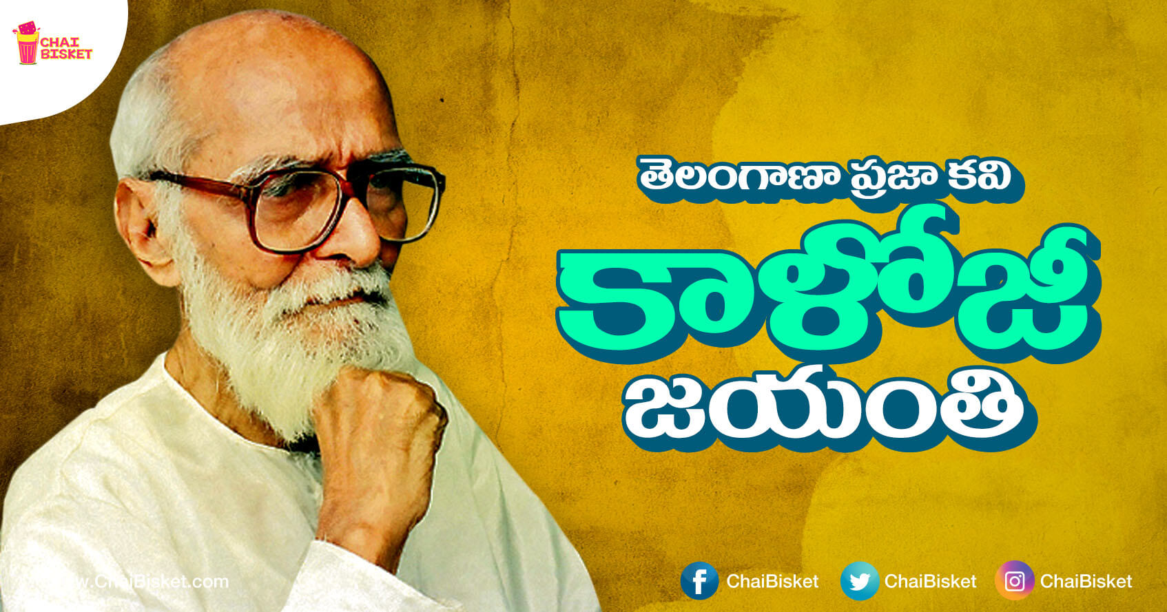 "అది వార్తలు కూడా సెన్సార్ అవుతన్న రోజులు, చాలా ఉక్క పోతగా ఉండేది...", కంగారు పడకండి కాపి కొట్టిన డైలాగే కాని సిచువేషన్ కి సింక్ అవుద్దని వాడాను. అలాంటి ఛాయ్ తప్ప బిస్కెట్ దొరకని రోజుల్లో, చదువు కేవలం గొప్ప వాళ్ళకే సంభందించిన వస్తువు గా పరిగనించబడే కాలంలో తెలుగు, ఉర్దూ, కన్నడ, మరాఠీ భాషల్లో ఉద్డండుడి గా ఉంటూ తెలుగు వచన కవిత్వం లో కొత్త మార్గం సృష్టించిన "ప్రజా కవి" మన కాళోజి నారాయణ రావు గారు.