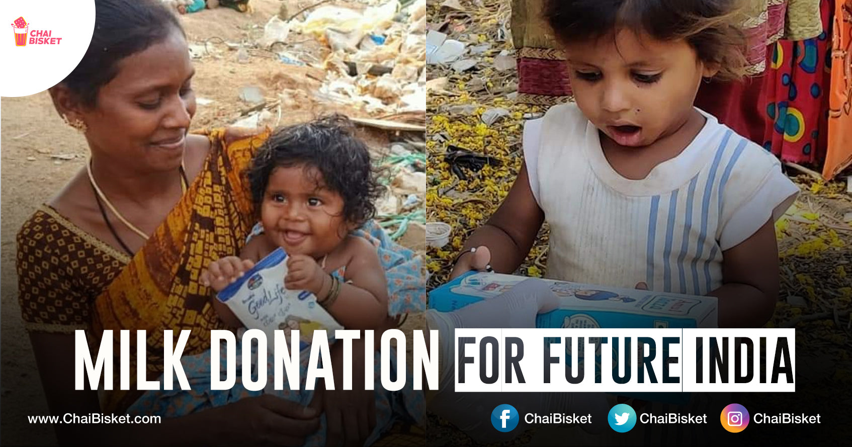 In the same way, myself Kalpana, with the help of my friends,in a way to save the lives of our future got ourselves engaged in a prospectus work. From the very common man to the government, everyone is donating rice and other groceries required by the grownup and the elderly but least importance was given regarding the donation of milk which is the basic essential commodity required by the infants and children.we therefore, started donating milk in the slums of Serilingampally and also other places for the past 21 days.Since those people living in slums do not have refrigerators, the chances of milk getting spoiled is very high which would leave the kids in starvation and so we are donating Tetrapak milk to them.