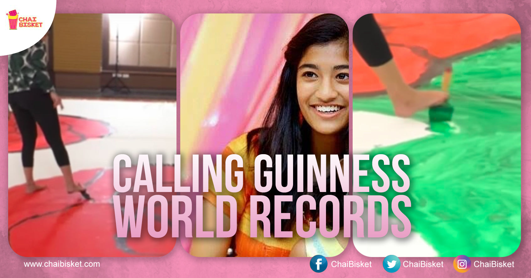 Painting is a creative art that needs patience, grace and perfection.The first thing that comes to our mind when we talk about painting is - the beautiful art with hands. Well, imagine painting with feet. Sounds crazy right? Well, if then, you gotta watchout for this talented 18-year old girl from Hyderabadi - Jahnavi Maganti. Remember, we talked about her dance painting in the past? Yes, the very same girl is now aiming big - so big that a place in Guinness Book is waiting for her.