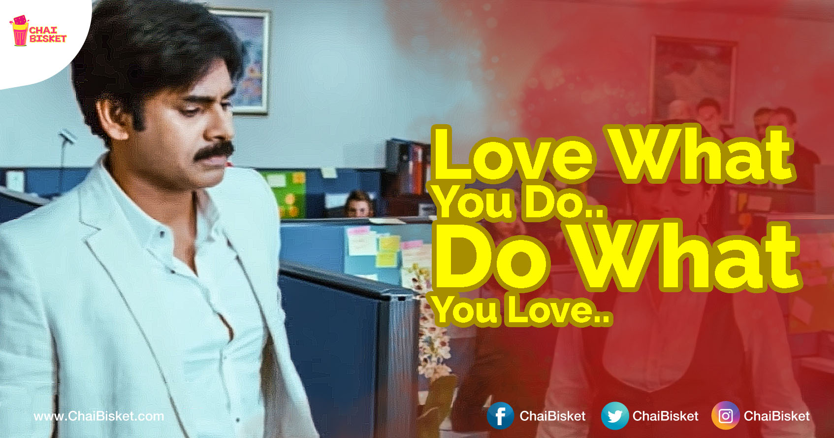 Kontha mandhi vallu cheyalanukunnadhi intlo cheppagane, “Nee istam nanna neeku nacchindhi cheyyi, kaani jagartha” ani cheppe parents chala arudhu. Inkondharu, intlo valla vaddu antunna, “Ledamma naaku adhi chesthe ne satisfaction untundhi, vere vaatillo naa 100% nenu ivvalenu, nenu adhi cheyagalanu anna confidence naaku undhi” ani cheppi vallani oppinchi, leka edhirinchi vallaki istam aina daantlo dookestharu. Ila chesinappudu modatlo kastalu edhuravthayi, intlo vallaki kuda aa badha untundhi. Kaani, mellaga vallallo unna talent tho okkokka mettu paiki ekkuthunte modhata aanandhinchedhi mana parents ey. Adhi chusaka, aa abbayi valla nanna, “Manavaadu edhaiana cheyadalade, maname thappugu anchana vesam” ani antunte pakka gadhilo unna koduku anandham tho kanta thadi pettukuntadu. Ventane velli nanna ni kougalinchukoni “Ippudu nanna naaku chala trupthiga undhi. Nenu, naaku istamaina pani chesthunnane kaani enduko oka pakka mimalni badha pettanu ani eppudu gucchuthu undedhi. Ippudu naaku aa badha ledu. Thank you nanna.” ani entho premaga cheppi aa roju nunchi thanu istapadina pani lo rendinthala thrupthini ponduthu, shikaranni taake antha etthuki edhuguthadu. Idhe “Do what you love” ante.