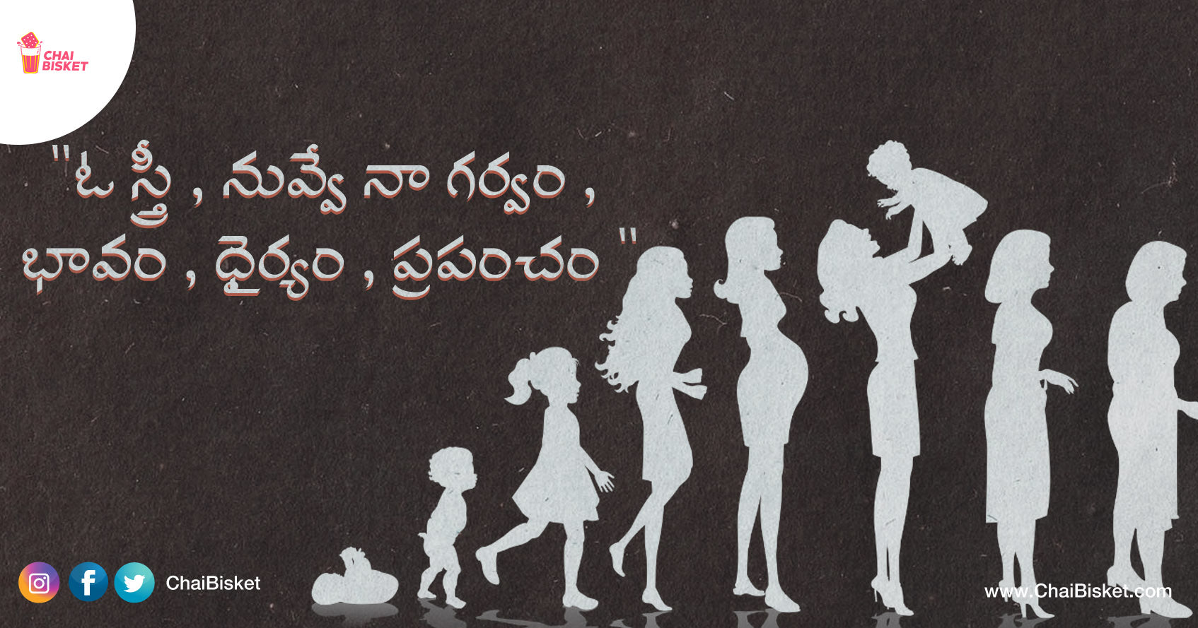 "ఓ స్త్రీ , నువ్వే నా గర్వం , భావం , ధైర్యం , ప్రపంచం ".