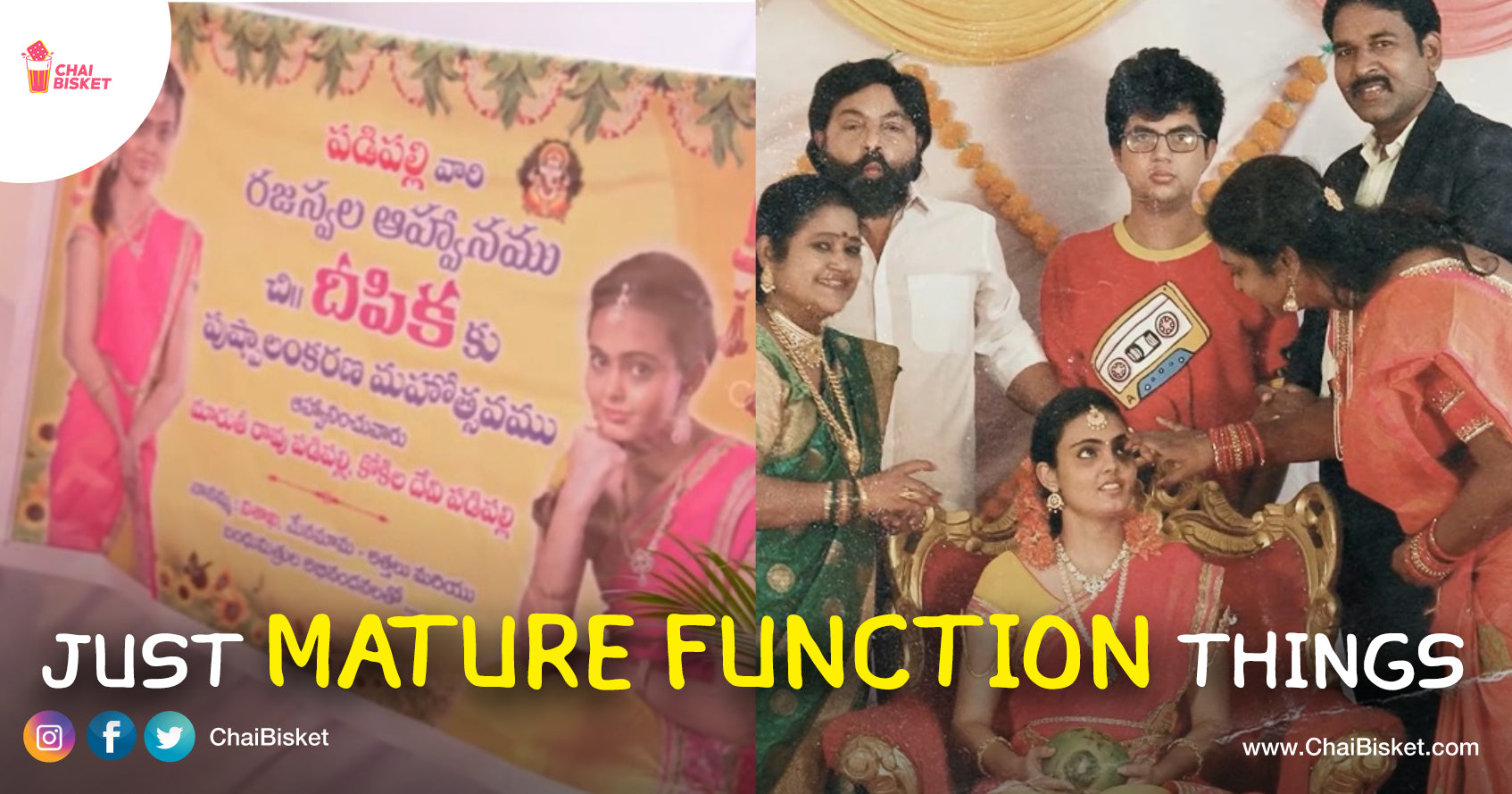 Asalu manaki periods vachayi anagane intlo vaallu pandaga la celebrate chesevaallu. Inka 5th day function chedhama, 13th day chedhama ani okate discussions-uu
