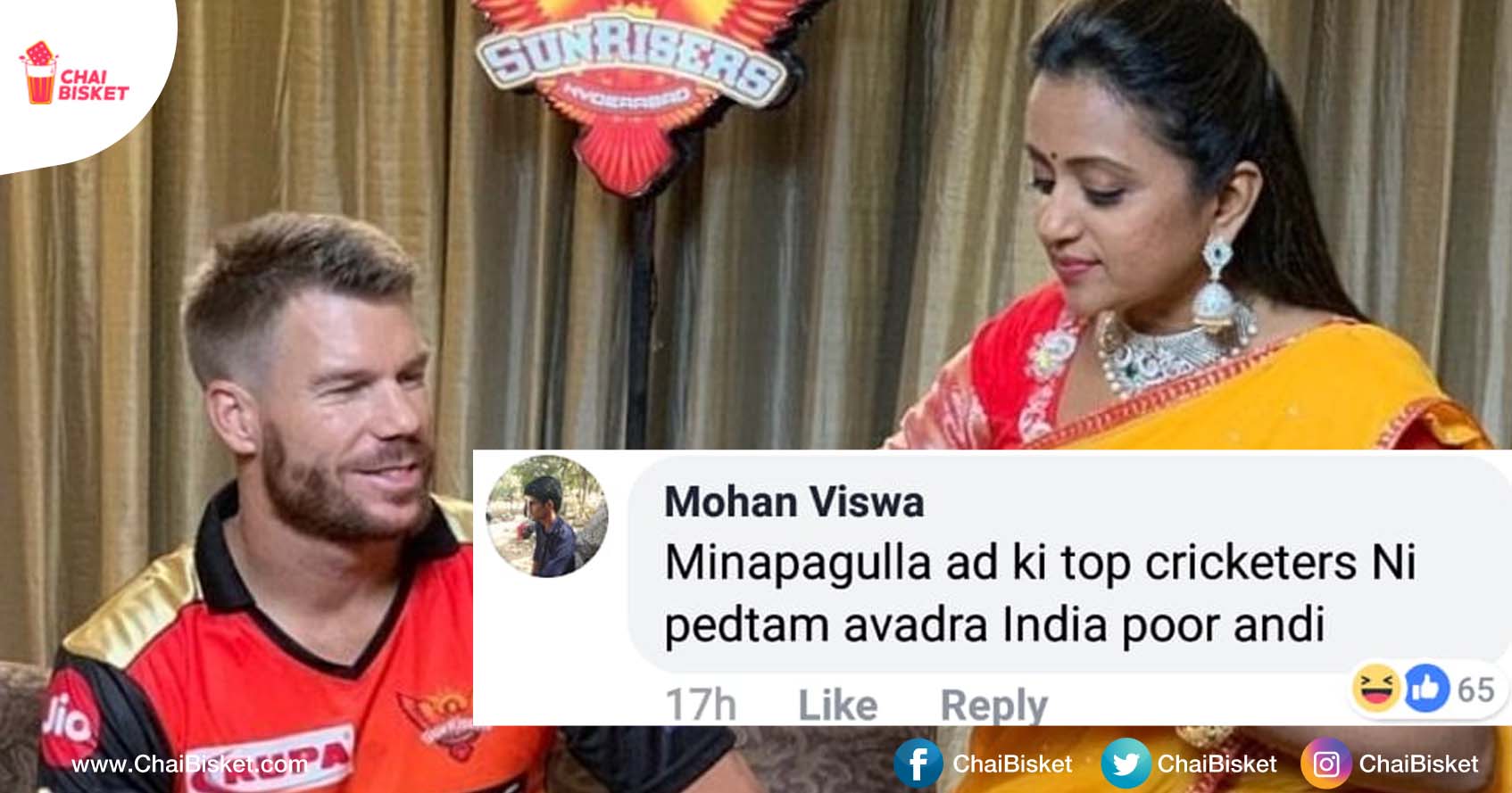 Oka ad internet ni oopestondi. Manam kallo kuda expect cheyani combination lo oka ad ni chusaam. Tenali Double Horse Minapa Gullu ane Andhra Based company ni Bhuvi, Warner, Lakshman chetha promote cheyinchaaru along with Suma garu. Kontha mandi enti ee ad ani shock ki guraithe kontha mandi oka telugu company international level players tho branding cheyinchukune range ki vellindi ani aanandapaddaru. But Middle of them they are another category which gave hillarious epic comments on this ad, Here are some such comments which are just funny and ROFL. Take it easy and have fun.