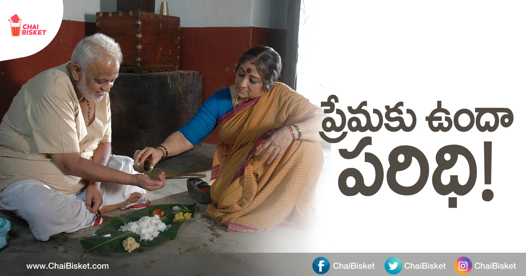 పగలంతా రాములవారి సేవకి అంకితం, సాయంత్రం చుట్టు పక్కల వారి లాగే పిల్లలు విదేశాలలో స్థిరపడ్డ తల్లిదండ్రులతో కలిసి కబుర్లు చెప్పుకోవడం, రాత్రి భోజనం సమయంలో తింటున్న పదార్థంలో పిల్లల ఇష్టాలు గుర్తు చేసుకోవడం, రేపు లేస్తామో లేదో అనే భయంతో నిద్రపోవడం, ఇదే ఈ ఇద్దరితో పాటు ఆ వీధి లో నివసించే ప్రతి ఒక్కరి దినచర్య. ఒక మాటలో లో చెప్పాలంటే ఆ వీధి, రిజిస్ట్రేషన్, కేర్టేకర్ లేని ఒక వృద్ధాశ్రమం. ఇంత బరువైన బాధని గుండెల్లో మోస్తున్నా, వాళ్ళని నడిపిస్తున్న ఒకే ఒక్క ఇంధనం, ప్రేమ. వారి వివాహం పెద్దలు నిశ్చయించినదైనా, వారిలో ప్రేమ మాత్రం వారిద్దరి మధ్యలోంచే పుట్టింది.