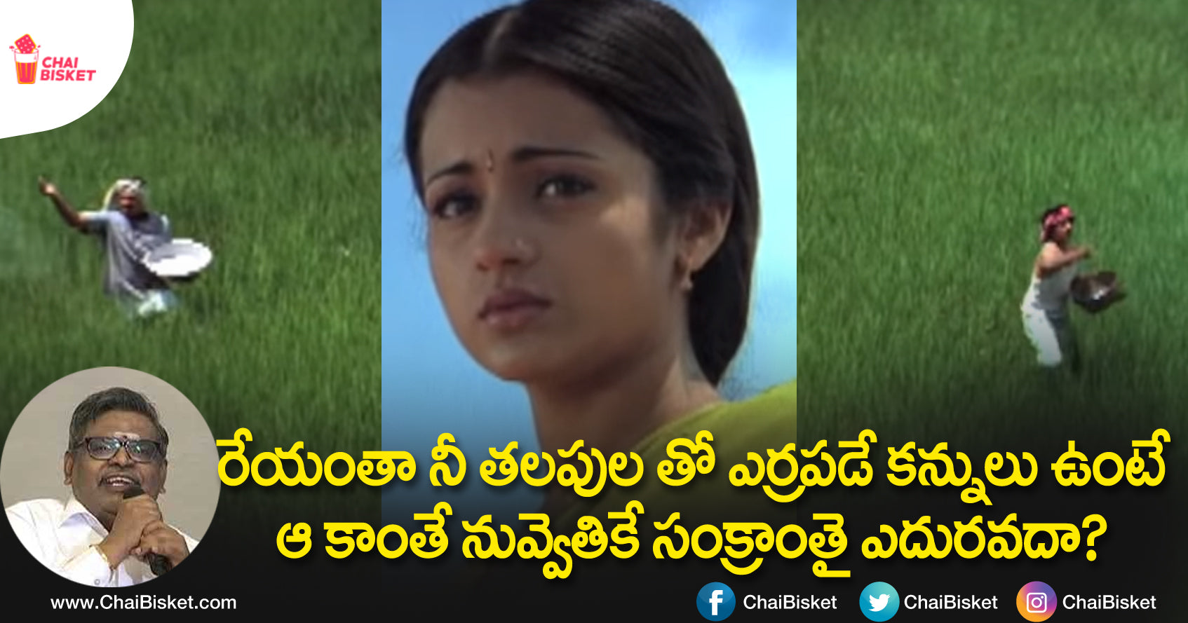 భూమి, ఆకాశాన్ని ప్రేయసి, ప్రియుడు గా వర్ణించారు. నిజానికి అవి రెండు కలవవు.. కానీ భూమి కొన్ని సార్లు వడగాలి సృష్టిస్తుంది.. ఆ వడగాలి మేఘం కి పిలిచే ఆహ్వానం లాంటిదే ప్రేమంటే.., ఆ వడగాలి ఆకాశాన్ని తాకాలని ఎలా ప్రయత్నిస్తుందో.. ప్రేమ కూడా ప్రేమించే వ్యక్తి ని చేరాలని అంతే ప్రయత్నిస్తుంది.. ఈ వడగాలి ఆరాటం తీరేలా ఆకాశం వాన గా కురుస్తుంది.. ప్రేమించుకున్న వ్యక్తుల మధ్య కురిసే ప్రేమ ని వాన తో బాగా ఉదాహరిస్తారు.. సిరివెన్నెల గారు. గాలి తాకినా వెంటనే మేఘం, వర్షం గా ఎలా మారుతుందో.. ప్రేమించుకున్న వ్యక్తులు మౌనంగా ఉన్న వారిలో ఉన్న మమతా ఒకరిని విడిచి ఒకర్ని ఉండేలా చేయదు.. పరుగులు పెట్టిస్తుంది.. అదే వారి మధ్య ప్రణయానికి శ్రీకారం అవుతుంది..