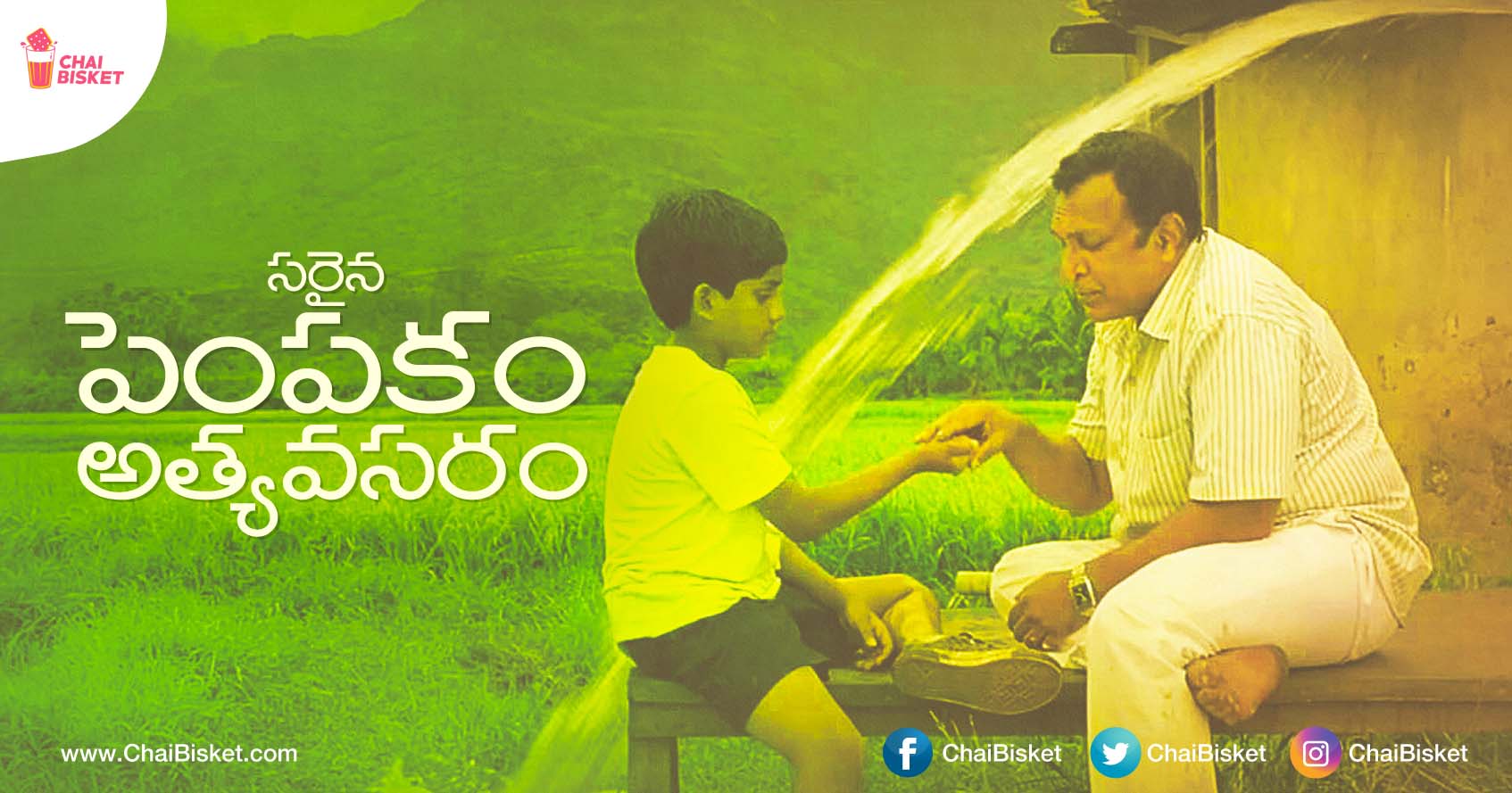 “aa vishayam vallaki thelidu kada. Valladi artham chesukune vayasu kuda kadu. Ina vadu chesina thappentra.? Sare, thappu chesade anuko yenduku chesado alochinchava? Nuvveppudu cheptuntav kada vadila chesadu ala chesadu ani, anthenduku nenu vanni chusina prathi sari vadi prathi mataloni, vadu chese prathi paniloni kuda naku nuvve kanipistuntav ra. Aa rakamga cheppalante vadikanna mundu nuvvu marali. Pillaladi addham lanti manasu ra, valla mundu manam edi unchite vallu thirigi ade manaki chupistaru. Okka vishayam gurthupettuko ra, manam manchi parents avvalante mundu manchi citizens avvali.” Ani gattiga class peekadu. Aa matalaki realize ayyi “vanni nenu ventane kalavali ra” annadu. Murthy Pandu unna gadi vypu cheyyi chupinchadu. Ventane thandri aa gadi talupu terichi chusadu. Appati varaku mancham meeda kurchunna pandu okka sariga thandrini chusesariki ulikkipadi bhayamtho “nenu ranu, nenu ranu” antu mancham venakki velli dakkodaniki prayatninchadu. Adi chusina thandri duhkhanni apukoleka mokallapaina chatikilabadi thala dinchukuni “nenu thappu chesanu ra” antu vekki vekki yedavadam modalu pettadu. Pandu mellaga daggaraki vatchi yedustu “nuvvedavaku nanna. Nenu intiki vatchestanule” ani cheppadu. Adi vinna thandri ventane panduni daggaraki teesukuni gattiga kaugilinchukuni manasulo “nijame, pillaladi nijamgane addham lanti manasu” anukunnadu.