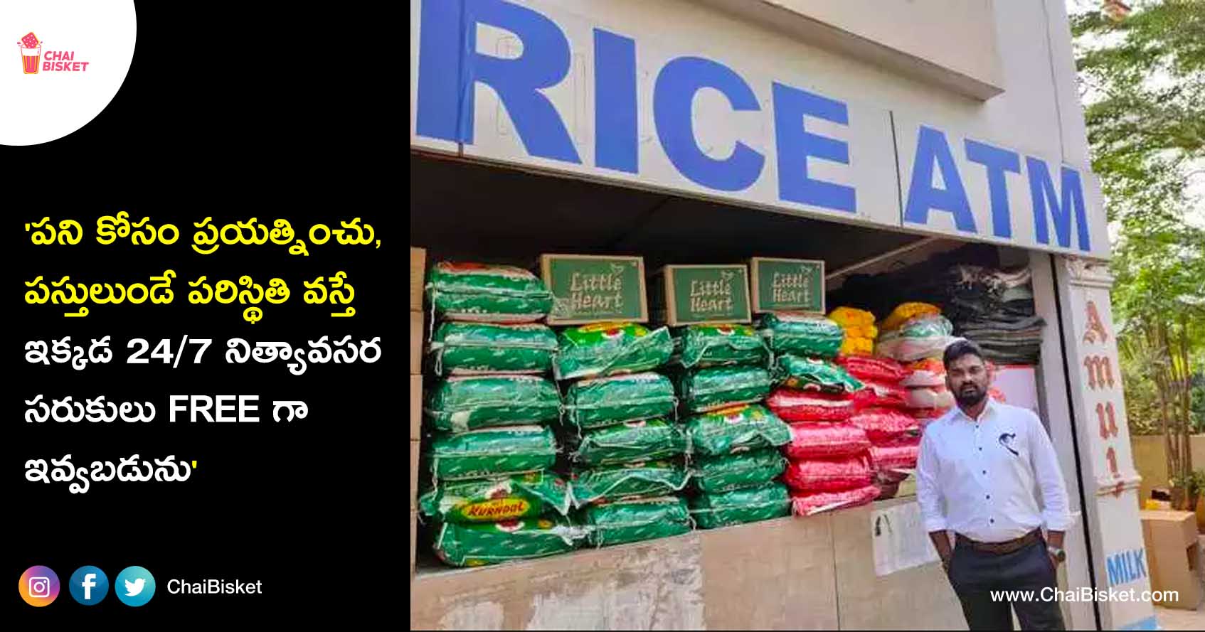 Ramu Dosapati garu, an HR executive in a corporate firm, has been running a ‘Rice ATM’ – a 24X7 supply of rice and other rations for the needy in Hyderabad since April, 2020.