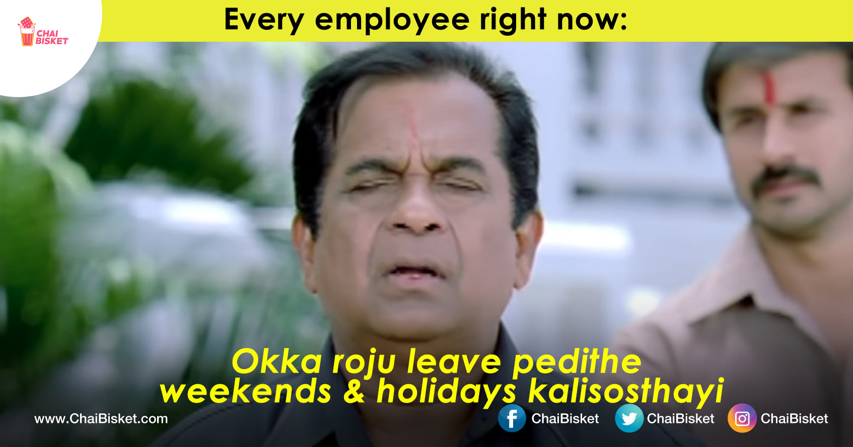 1. Saaaar leaveeee Festival ki inka konni days eh undi kabati andharam ipatike RCB fans la oka prediction table veskoni untam... kalasi vasthadho ledho thelidhu kani esari mathram koncham leaves tho adjust cheskunte festival ki mundhe bonus ga weekends kuda unnai... inkenti mari manager tho ela matladalo rehearsals cheskunnara..!