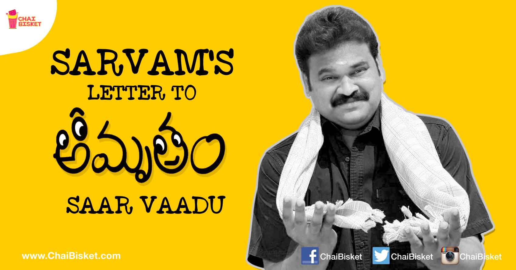 Surely you all remember "Amrutham" on Gemini TV from our childhood. Surely you must have wondered what happened to the characters after the serial ended. Well this letter we found is an answer to one of the questions. Read on to find out what happens when Sarvam decides to get in touch with Amrutham Saar Vaadu after all these years.