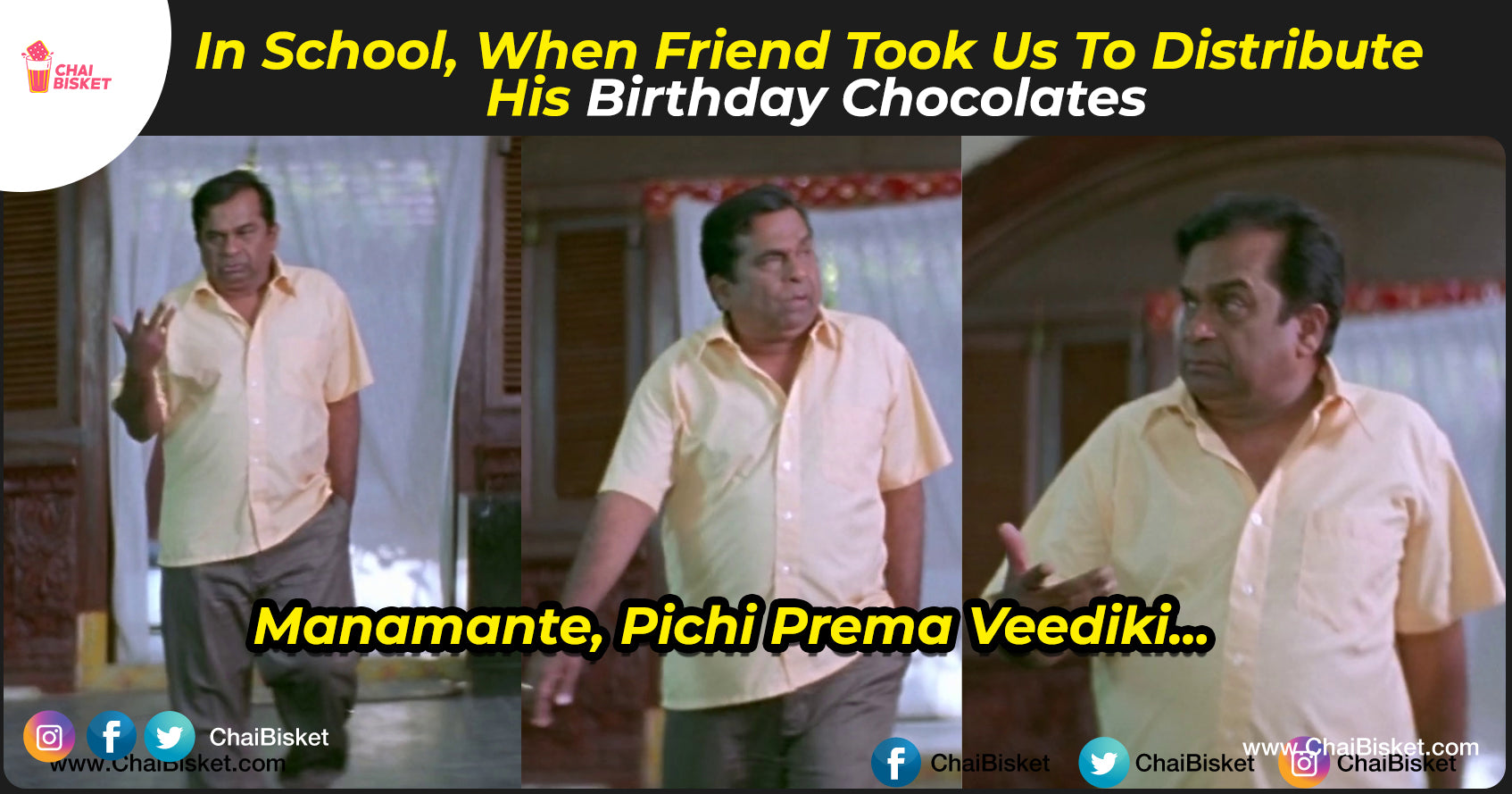 “Class lo andhariki oka chocolate icchi manaki mathrame rendu chocolates iccharante manam entha special ra", school antha oka round vesi, class class ki mana best friend tho chocolate distribution vellevallam.