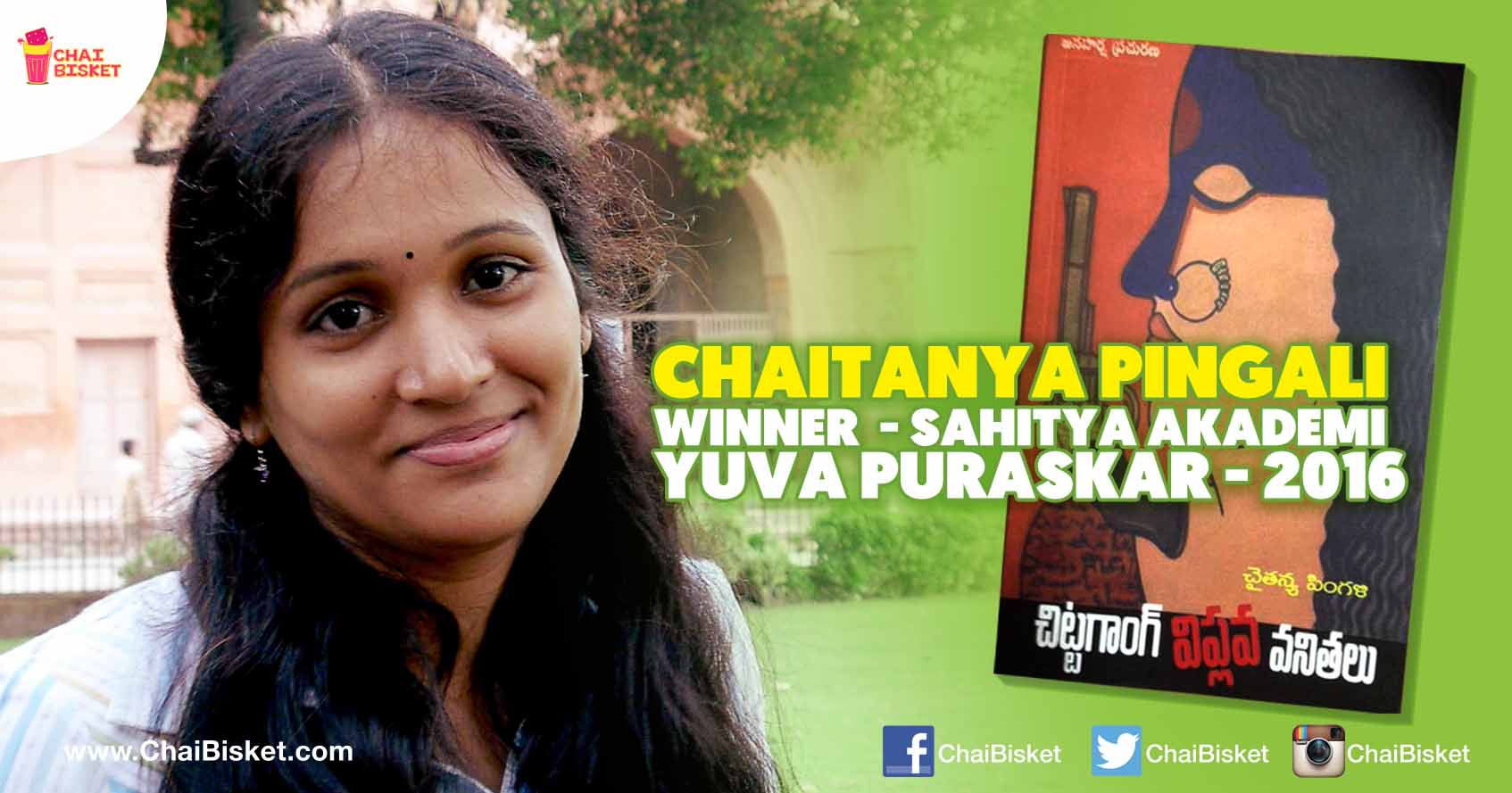 Chaitanya Pingali is a new age Telugu writer. It is a matter of great pride for all Telugu speaking people that she has won the Sahitya Akademi's "Yuva Puraskar" Award for the year 2016. She received this award for her book titled "Chittagong Viplava Vanithalu" which is a tale of women members of the IRA (Indian Republic Army) in a pre-independence Chittagong. She has always been highly vocal about women's issues and has been actively opposing the sexist portrayal of women in cinema.