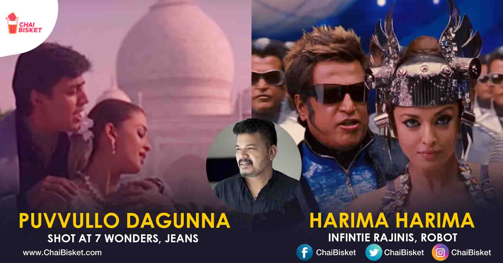 Songs ni picturise cheyadam ante, Shankar gari taruvathe evaraina, Whole India lo Songs picturisation lo Shankar gariki oka separate fan base undi, Song kosam konni crores karchupetti vesina sets, General ga evaru vellani locations, Very and rare beautiful visual wonders ni create chesaaru, Shankar gaaru aayana songs lo, Andhulo something special ga nilichina konni songs ni list chesthunna, chusi enjoy cheyandi.