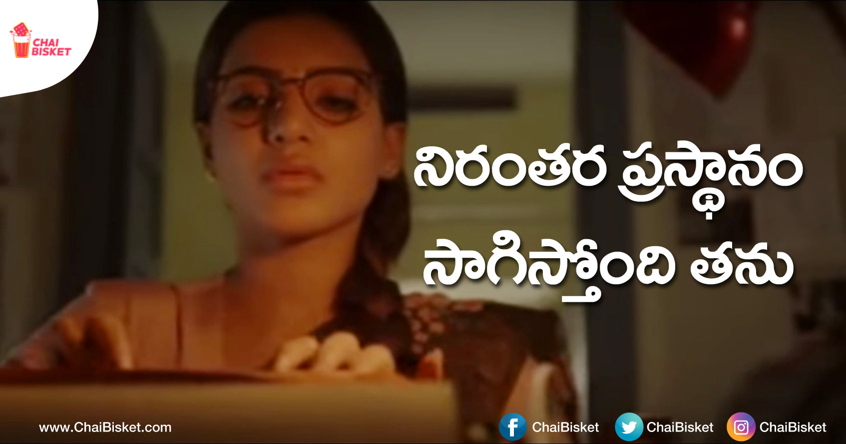 ప్రసంశలకి పొంగిపోకుండా విమర్శలకి విసిగిపోకుండా అహంభావం దరి చేరనీయకుండా ఏనాడూ అలసిపోకుండా నిరంతర ప్రస్థానం సాగిస్తోంది తను