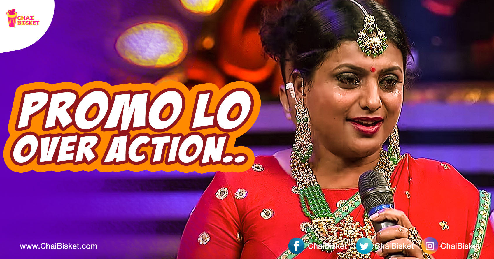 Promos general ga... oka particular show ee time ki ee date lo vasthadhi ani cheppadaniki vestharuu.. Dantloo konni promos chusthey chala excitement feel ayipothuntam...kani konni "Overaction promos" untayi... Payinah Pataram Lona Lotaram annatu oo edho jarigipothundhi show lo anattu untayi.. kani teera show chusthey akkada nijangaa em jargadhu....Recent ga Vijayadasami special antu oka promo net lo baga viral aindi.. Idhi kotthem kaadhu.. Ilantivi chaalane unnayi.. vatiloo konni ivi.. Oka look eskondi :