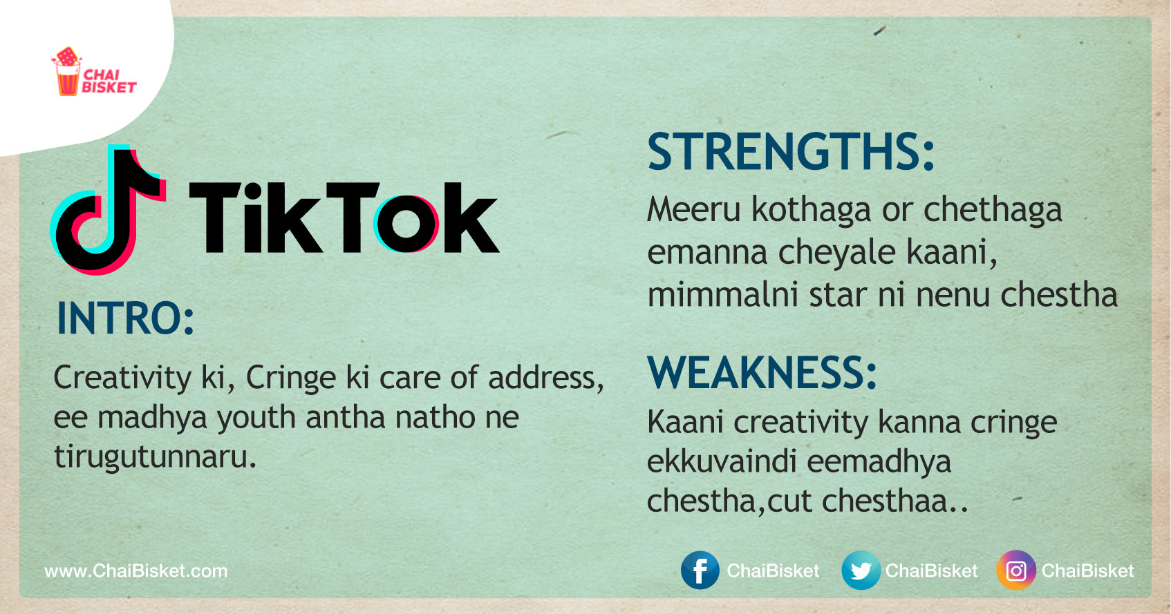 Interview lo kaani, Online parichayam aina friend kaani, evaraina kotha vaallu manalni modati ga adige prasna, "Tell me about yourself?". Nee gurinchi nuvvu cheppukokapothe inkevaru chepthaaru bossu, so cheppaka tappadu. Kaani idhe question ni manam taruchu ga vaade "Social media platforms" ni adigithe avi em answer chesthaayi.. Let's see.