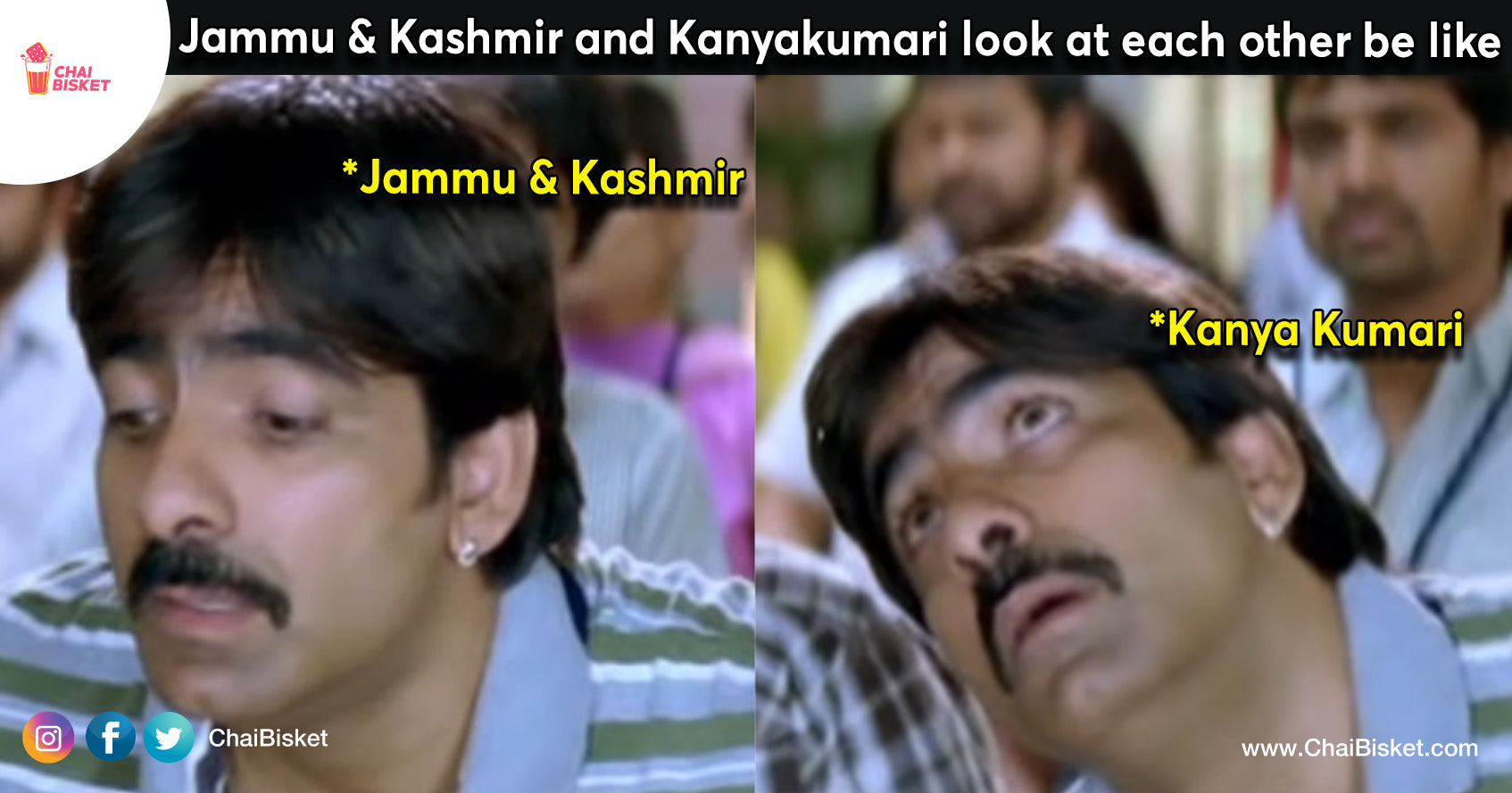 Kanyakumari to other states: Memu mimalni thala ethukoni chustham thelusaa... Kashmir: Memu mimalni thala dhinchukoni chustham thelusa...