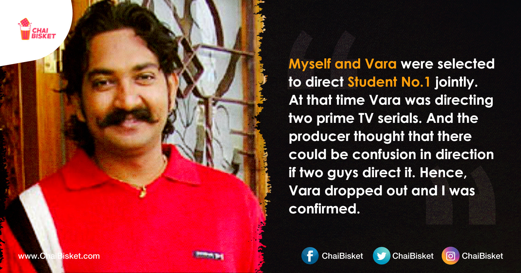 Myself and Vara were selected to direct Student No.1 jointly. At that time Vara was directing two prime TV serials. And the producer thought that there could be confusion in direction if two guys direct it. Hence, Vara dropped out and I was confirmed.