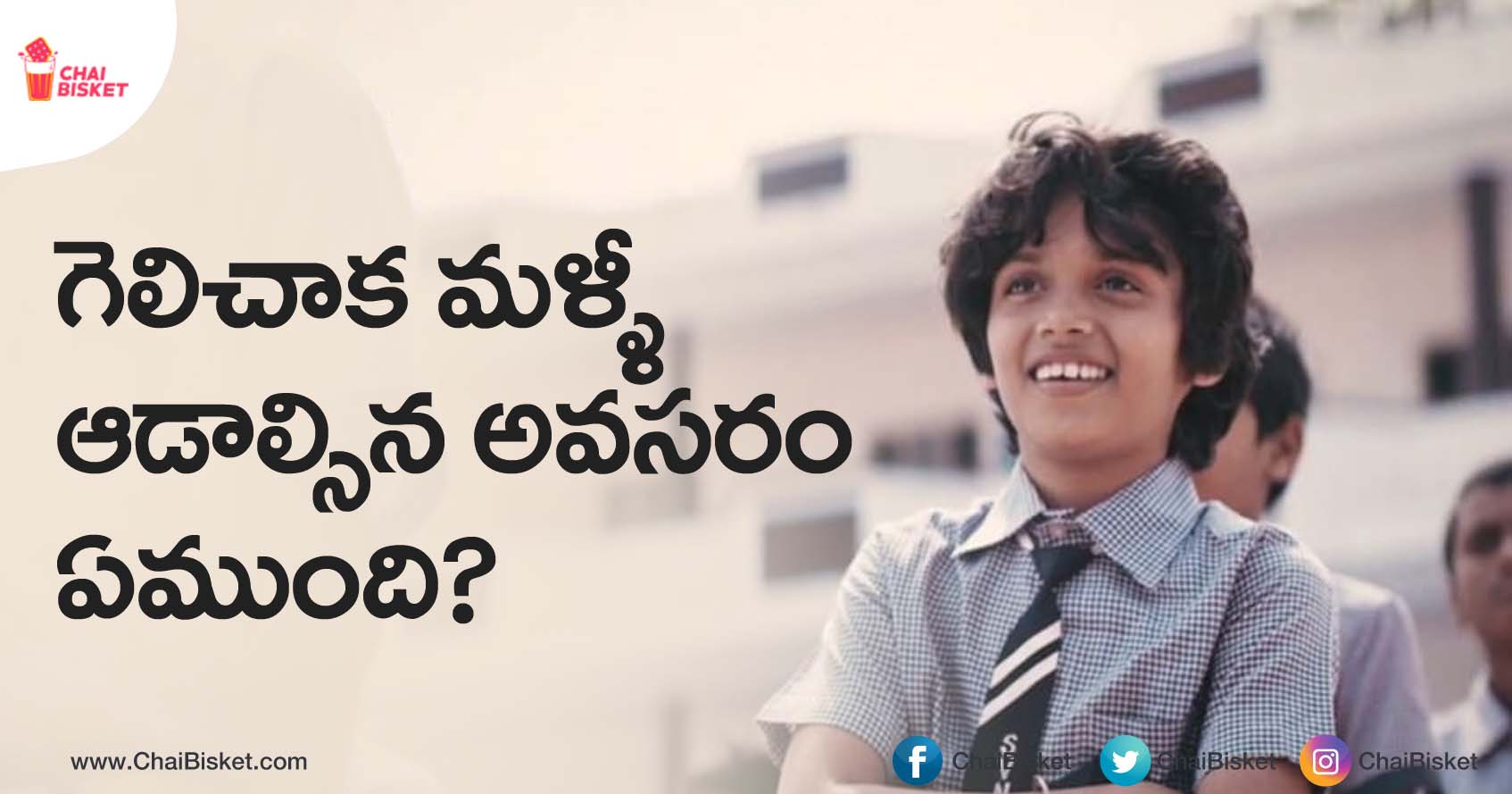 " సరే, మీ నాన్న చెప్పింది కాసేపు పక్కన పెట్టేద్దాం. ఇంకెవరో చెప్పిందీ కూడా వద్దు. నీ వరకు నీకు ‘గెలుపు’ అంటే ఏంటి చెప్పు? " మాష్టారు రిషి ని అడిగారు. రిషి కి ఎం చెప్పాలో తెలియయట్లేదు. కానీ ఎదో చెప్పాలని ప్రయత్నిస్తున్నాడు, ఆలోచిస్తున్నాడు. కాసేపాగి… " ’సంతోషం’, నాకు గెలుపు అంటే సంతోషం మాష్టారు..." అన్నాడు. " అంటే…? నీకు సంతోషాన్నిచ్చేది ఏదైనా అది గెలుపే అంటావా...? " " అవును. నిన్న రాకేష్ వాళ్ళ టీం పై 15 రన్స్ తో గెలిచాం. మా టీం లో అందరం సంతోషంగా సెలెబ్రేట్ చేసుకున్నాం. సో, అందుకే నాకు గెలుపంటే సంతోషం అనిపించింది. " " ఇంకేం, ను గెలిచేసావ్ గా. ఇక ఎప్పుడు క్రికెట్ ఆడకు మరి...? " రిషి ని చూసి నవ్వుతూ అన్నారు మాష్టారు. " అదేంటి మాష్టారు...? " " అవును, నువ్వే అన్నావ్ గా మీ టీం గెలిచింది అని... మరి మళ్ళీ మళ్ళీ ఆడటం ఎందుకు.? " " . . . . . . . . . . . . "