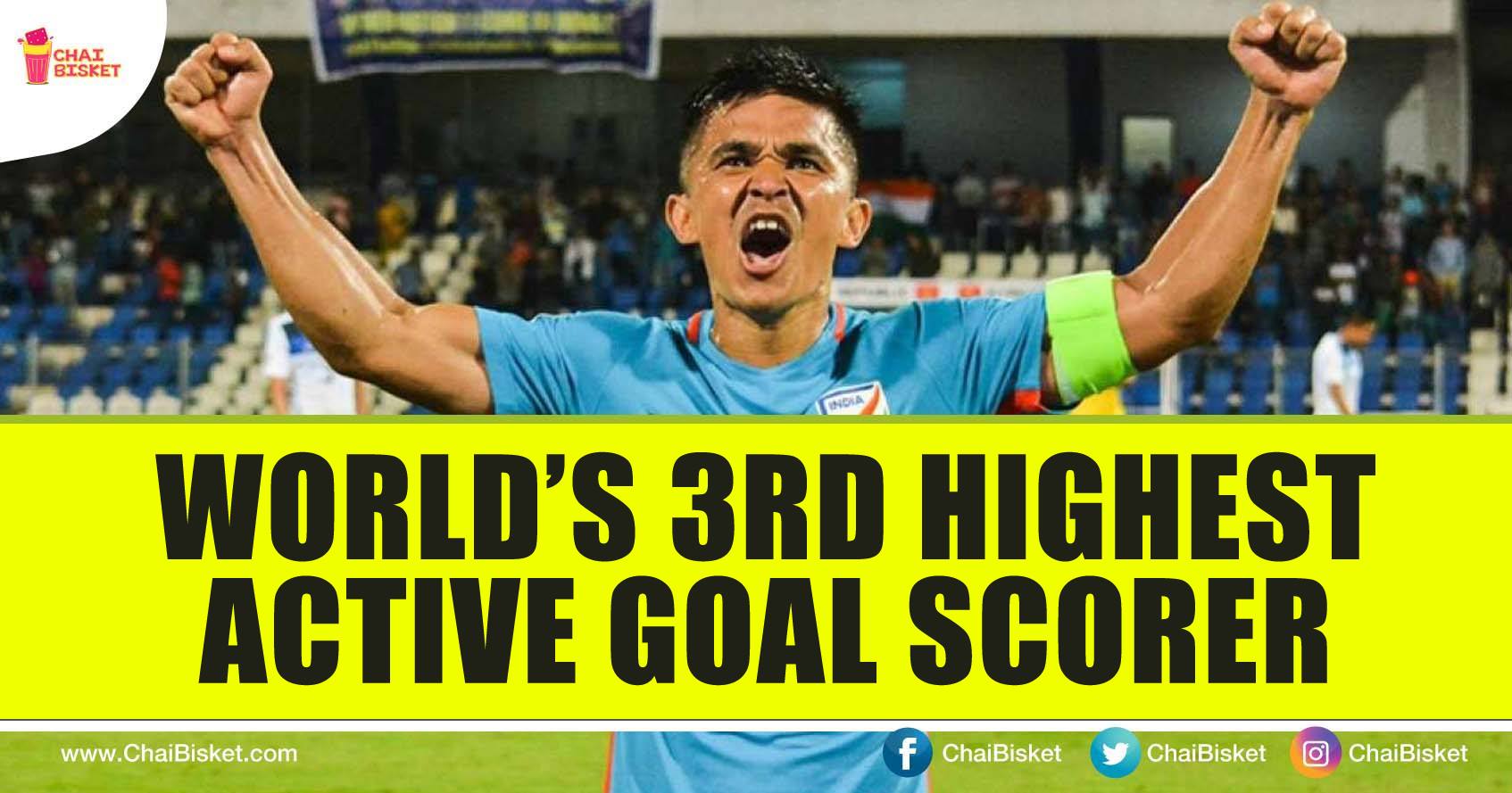 That leaves him just behind Ronaldo and Messi. Messi is at 65 goals, and Chhetri is at 64.