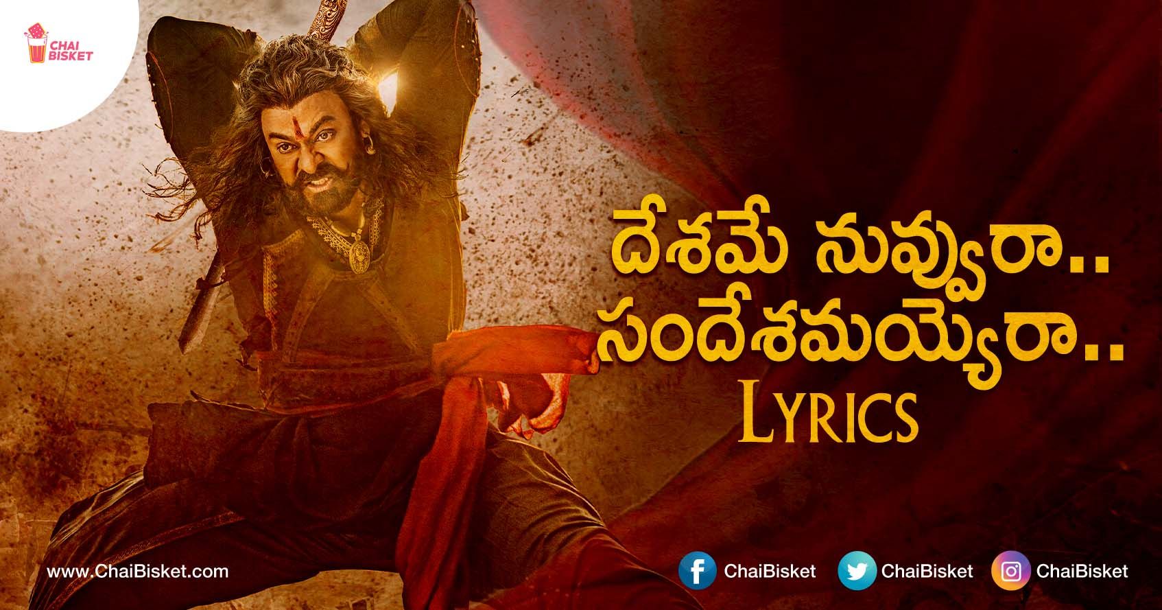 మాట లోన దేశమే కత్తి వేటులోన దేశమే కాలి అడుగులోన దేశమే కాలి బూడిదైన తల్లి కోసమే దేశమే నువ్వురా... సందేశమయ్యెరా...