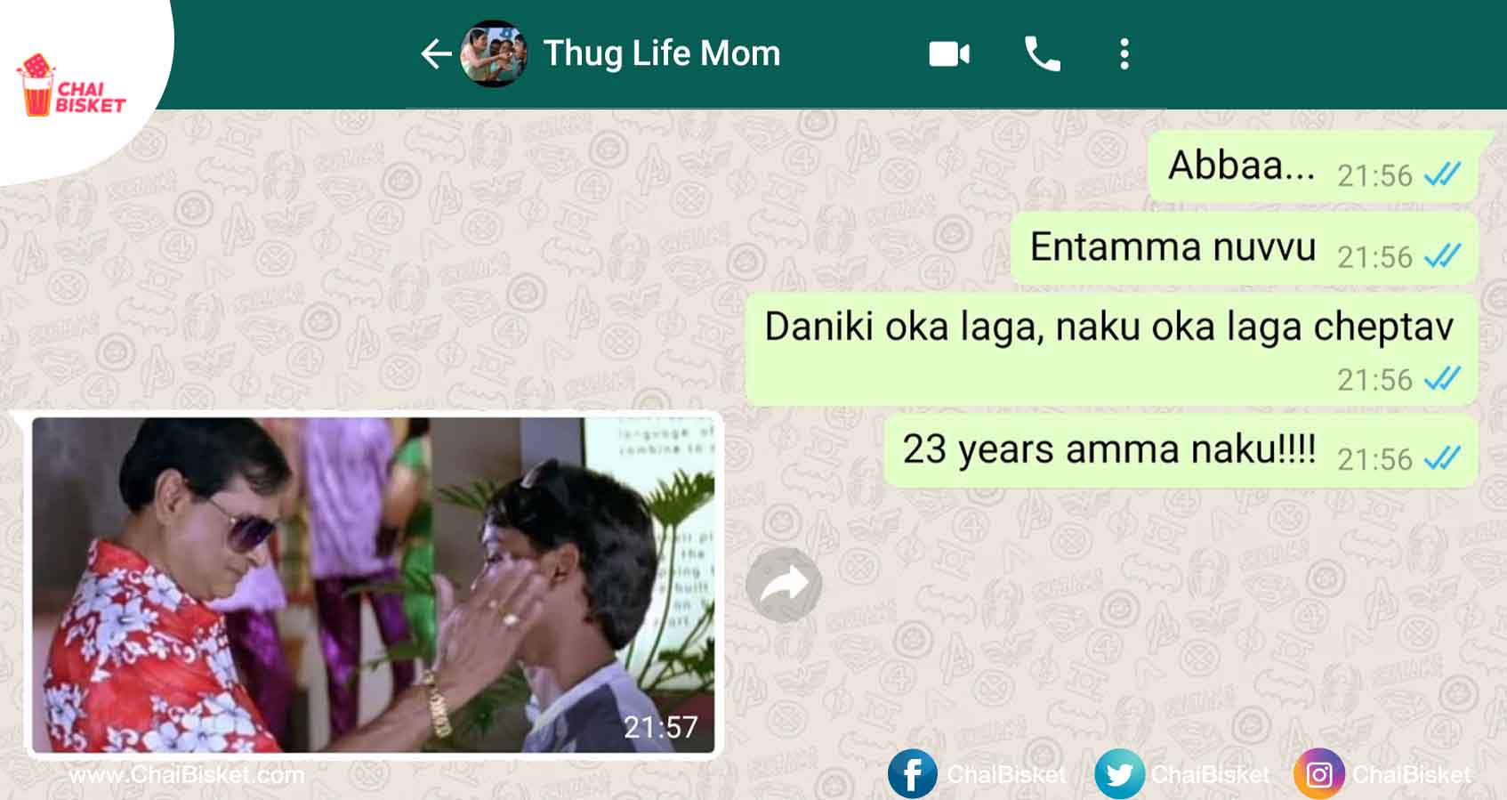 Study or job kosam manam intiki dooram ga unnappudu amma ki phones leda video calls chestuntam. Okkosari chat kuda chestuntam. Here's a chat (that is created on fictional basis) about how mom reacts with (only) memes, when we talk to her. Lets go.... (P.S : No logic-lu, no kopaalu, no discussing-lu ....... lets have a normal look than a microscopic view)