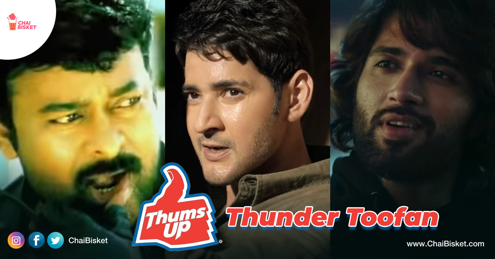 Anni ads lalo konni ads veru. Aa category lo ThumpsUp ads vasthaayi. Baboyy.. oka cinema ki action sequence ni design chesinattu untaayi vaala ads, Aa stunts enti helicopter lu bike lu veskuni oka cooldrink kosam Samudralalo, aduvullo, gallo ki egaradam enti. Taste the Thunder antu eevela edoti adarakottali ani manam balanga fix ayyela untaay Thumpsup ads. Monnati varaku Mahesh Babu adaragodutunte, Appatlo Chiranjeevi garuthana thunder taste ni choopinchaaru. Recent ga Thumps Up Taste The Thunder Ads loki toofan la Vijay Deverakonda vacchaadu. Ofcourse action choreography design paatha ads ki emantram taggaledhu